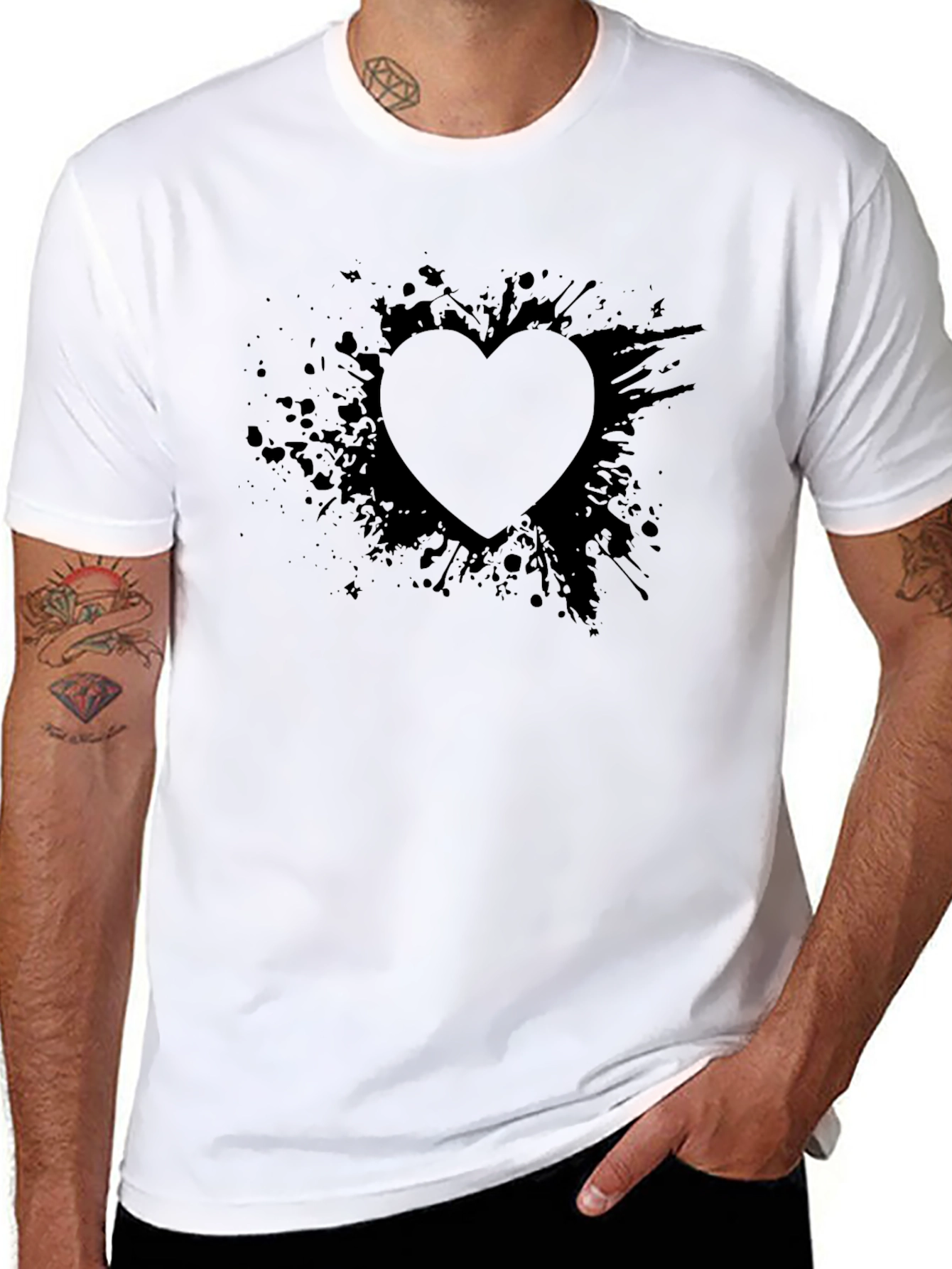 Show off your unique style with this sleek black t-shirt featuring an abstract heart design. The bold, monochromatic graphic creates a modern and edgy look. Made from soft, breathable fabric, this tee offers both comfort and style. Perfect for casual outings, concerts, or simply expressing yourself, this shirt is a versatile addition to any wardrobe. Pair it with jeans, shorts, or a skirt for a trendy and effortless ensemble. Stand out from the crowd with this eye-catching heart tee!