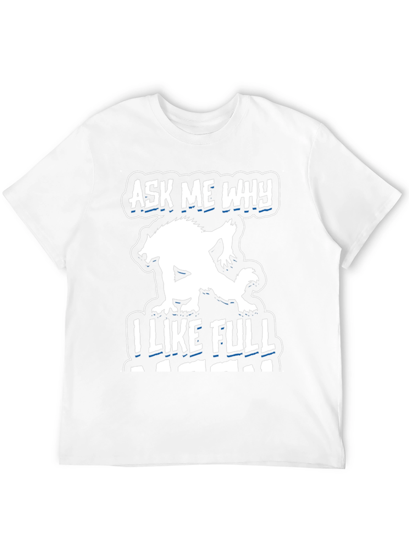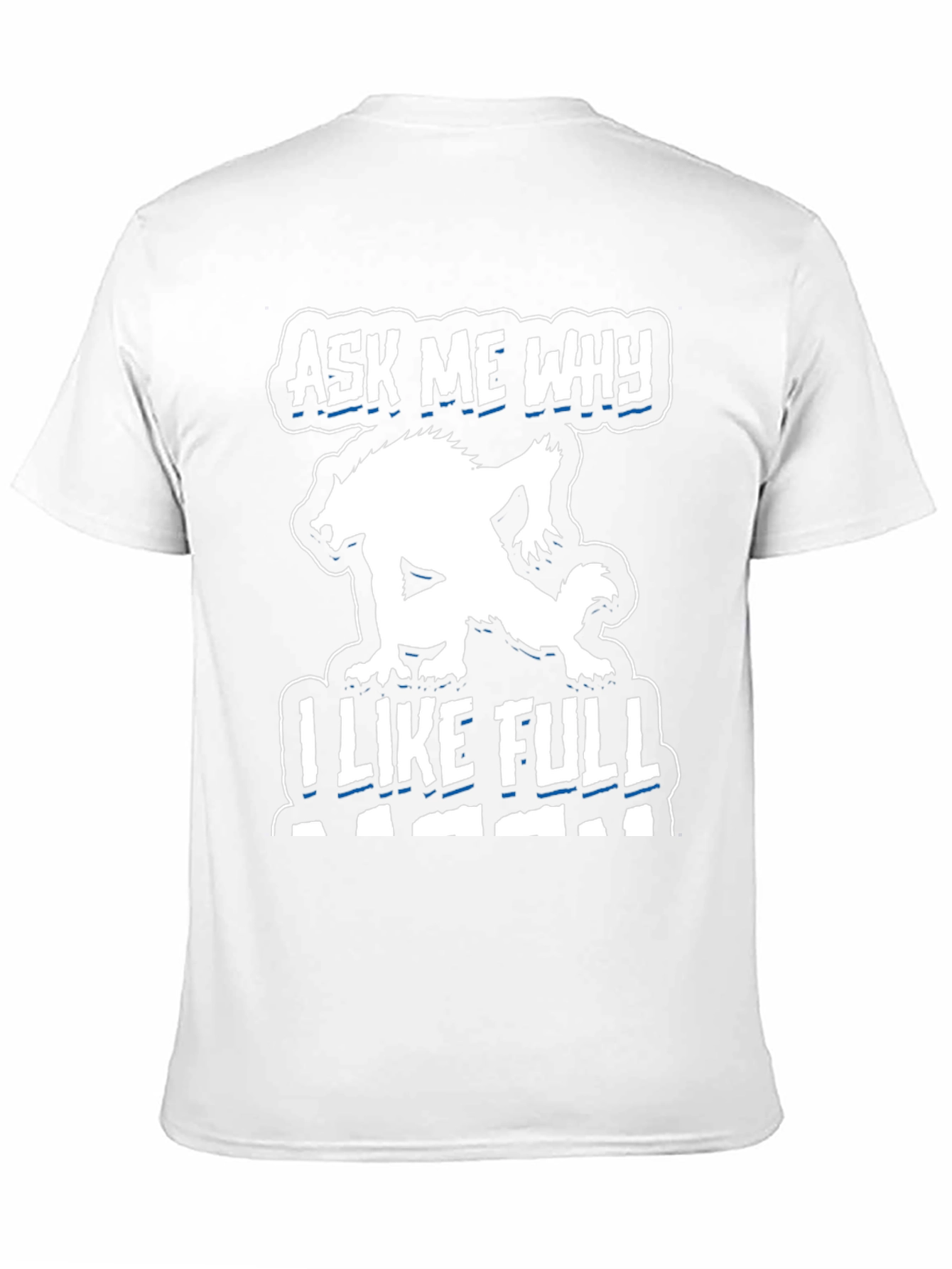 Show off your playful side with this eye-catching black T-shirt. The shirt features a bold white graphic with a humorous message. The design includes a stylized silhouette of a werewolf, and blue accents enhance the lettering, giving it a unique, modern look. Made from a soft, comfortable fabric, this tee is perfect for casual wear. Wear it to parties, social gatherings, or just around town to spark conversation and showcase your unique sense of humor. This T-shirt is a fun and stylish way to express yourself. Get yours today and let the good times roll!