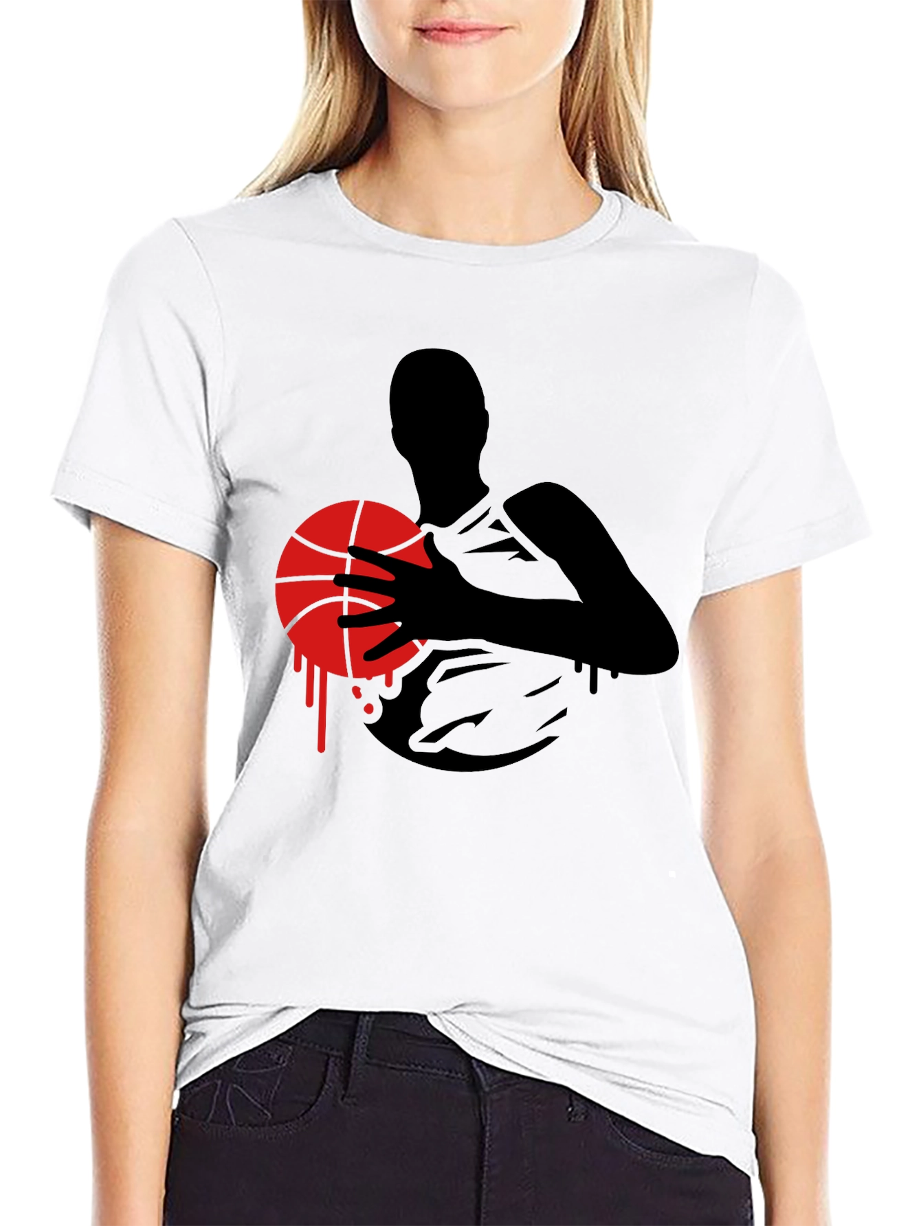 Make a statement with this bold graphic tee! This eye-catching shirt features a striking silhouette design of a basketball player holding a ball with unique dripping paint accents. Made from comfortable, breathable fabric, this tee is perfect for everyday wear, whether you're hitting the court or just hanging out with friends. The unique design sets you apart from the crowd and showcases your love for the game. The black color is versatile and easy to match with any outfit. Add this must-have piece to your wardrobe today!