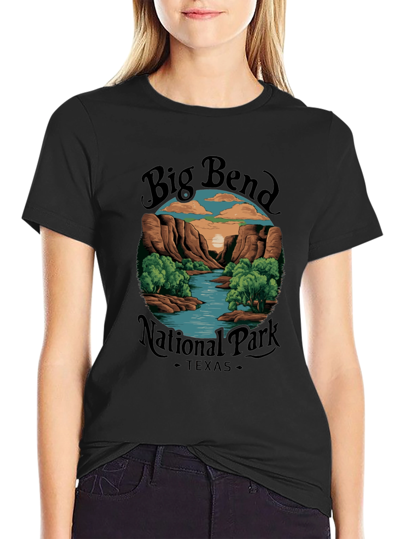 Show off your love for the great outdoors with this stylish black t-shirt! Featuring a vibrant graphic of Big Bend National Park in Texas, this tee captures the beauty of the canyons, river, and sunset in a unique design. Made from a comfortable fabric, this shirt is perfect for casual wear, outdoor adventures, or as a souvenir for park enthusiasts. Its eye-catching design is sure to spark conversations and turn heads wherever you go. This classic fit tee is a must-have for any nature lover's wardrobe. Get yours today and celebrate the natural wonders of Texas!
