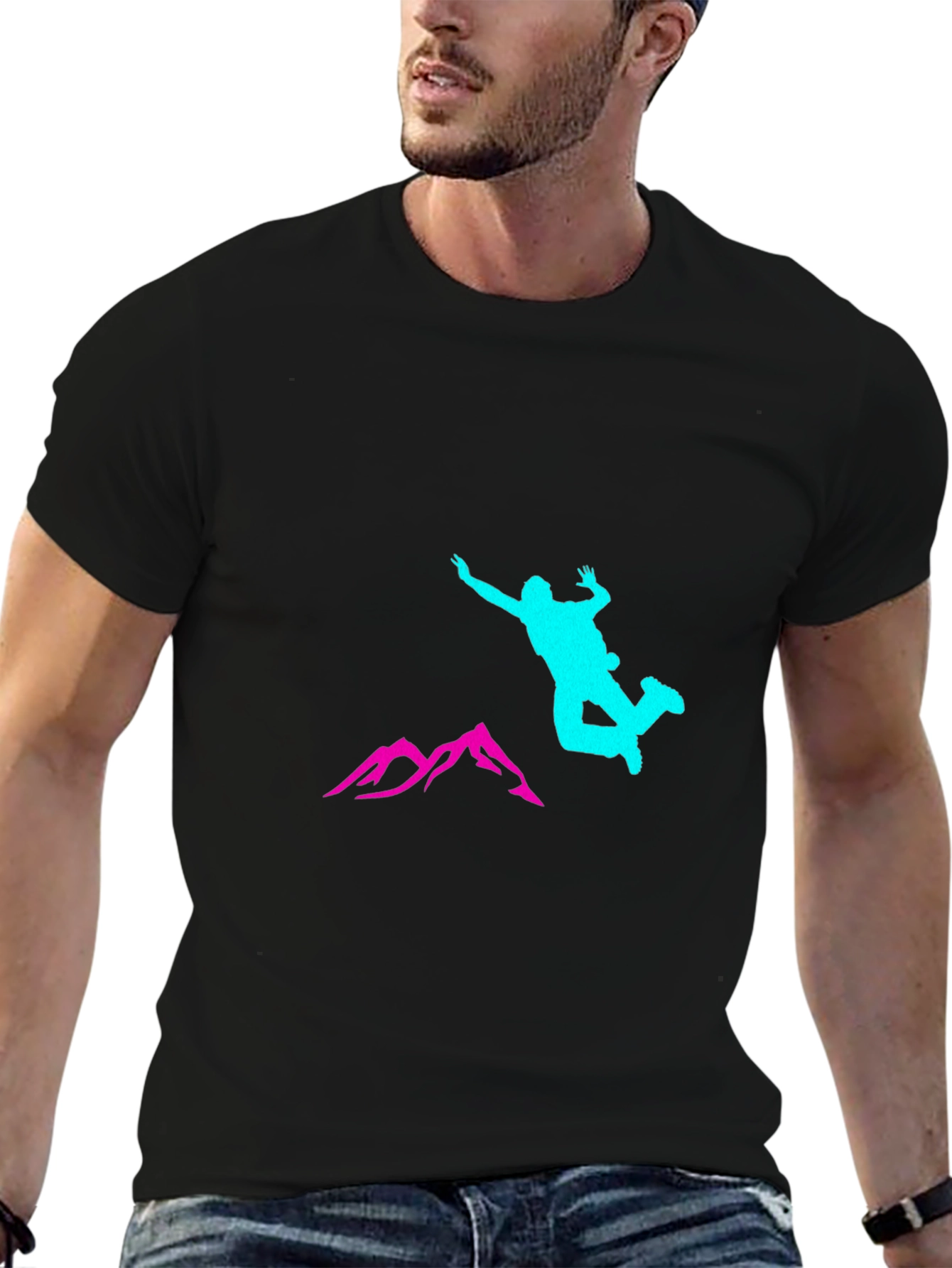 Elevate your casual style with this eye-catching black T-shirt! This unique tee features a bold, colorful design with a skydiver soaring above vibrant pink mountain peaks. Made from a soft, comfortable fabric, this shirt is perfect for everyday wear. The striking graphic adds a touch of adventure to your wardrobe, making it ideal for outdoor enthusiasts and anyone who loves a standout look. Pair it with jeans or shorts for a relaxed, stylish outfit. Show off your adventurous spirit with this must-have T-shirt!