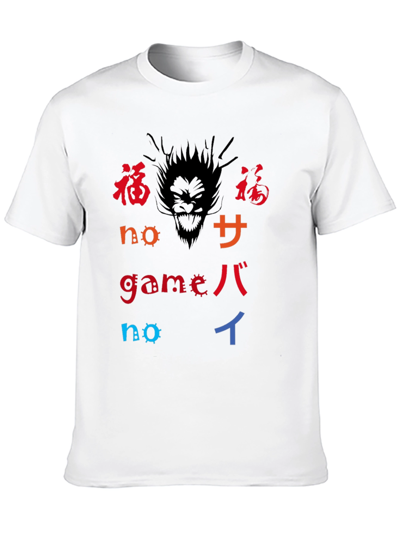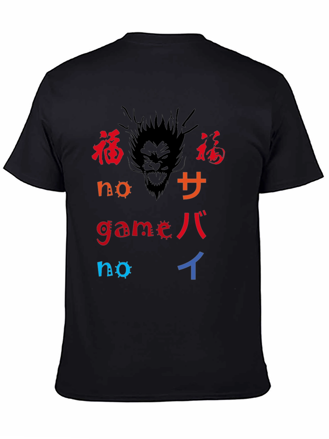 This black t-shirt features a vibrant and eye-catching graphic print. The design incorporates both Japanese characters and a stylized monster face, creating a unique and bold look. The characters are colored in red, orange, and blue, adding to the shirt's visual appeal. Made from a comfortable material, this t-shirt is perfect for casual wear. Show off your unique style with this standout piece. Ideal for fans of Japanese culture, gaming, or anyone who wants to make a statement. A great addition to any wardrobe.