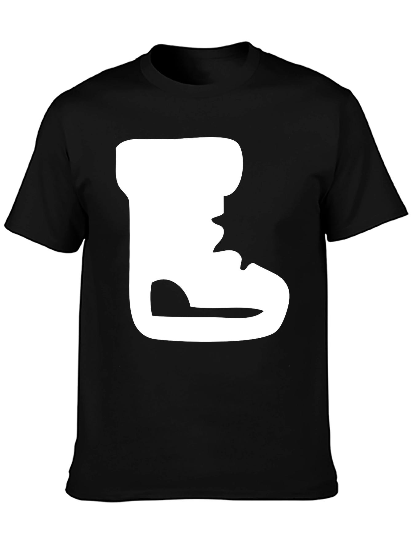 Show off your style with this classic black t-shirt! Made from comfortable, breathable fabric, this tee features a bold, eye-catching white silhouette of a boot design. The minimalist graphic adds a touch of rugged appeal. This shirt is perfect for casual wear. Pair it with your favorite jeans or shorts for a relaxed yet stylish look. It's a great gift for any shoe enthusiast.