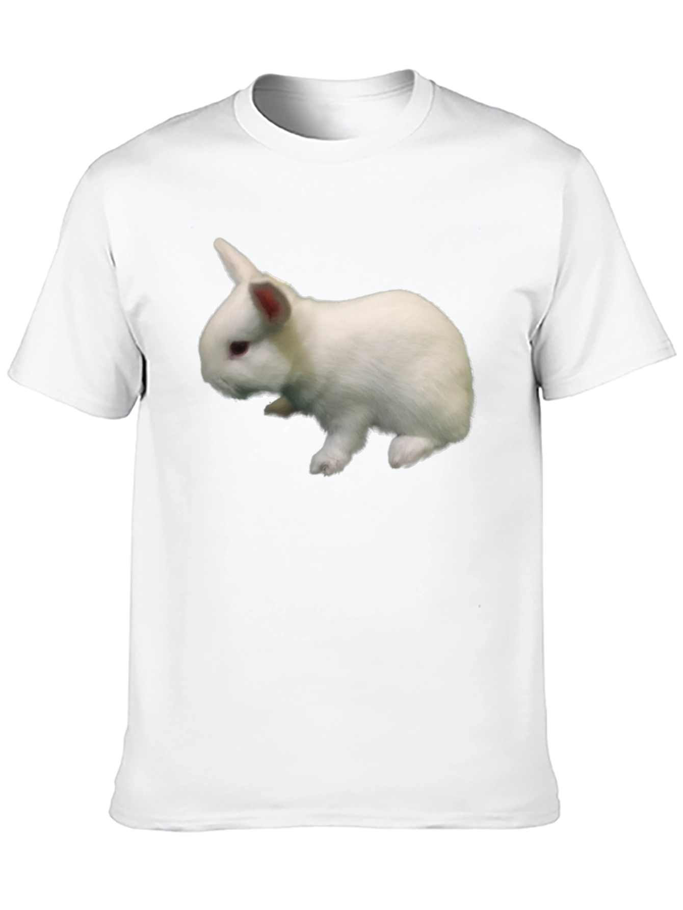 This classic black t-shirt features a charming graphic print of a fluffy white rabbit, adding a touch of whimsy to your everyday wardrobe. Made from what appears to be a soft, breathable cotton blend, this tee ensures both comfort and style. The regular fit and short sleeves offer a relaxed and casual look, perfect for layering or wearing on its own. Ideal for animal lovers, those seeking a unique statement piece, or anyone who appreciates playful fashion. Dress it up with a blazer or keep it casual with jeans - this versatile t-shirt is sure to become a go-to favorite.