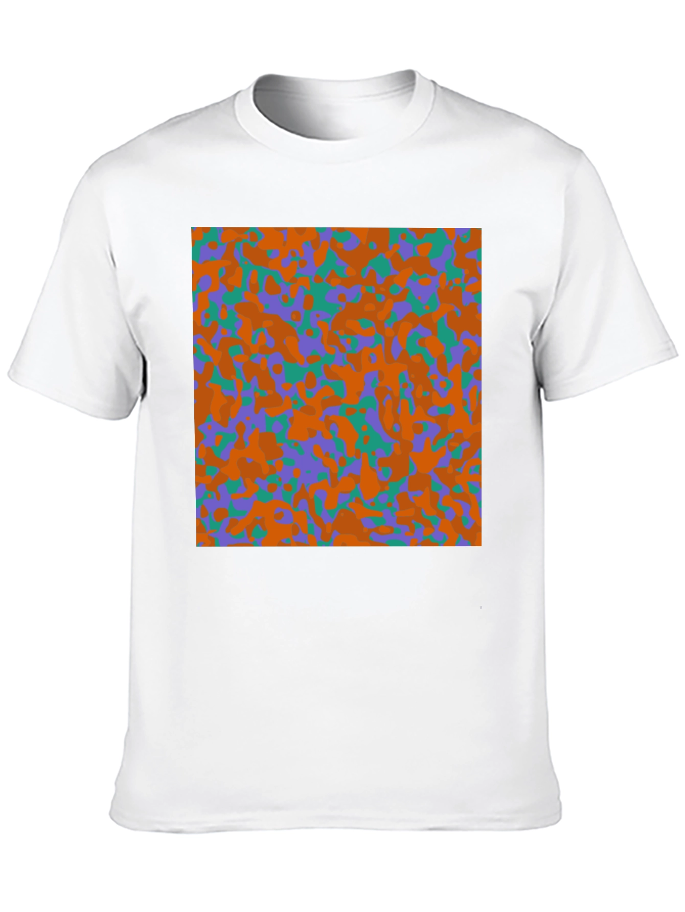 Showcase your unique style with this striking black t-shirt, featuring a vibrant and eye-catching camouflage pattern. The design incorporates a blend of orange, purple, and green hues, offering a modern twist on the classic camo look. Made from a soft and comfortable fabric, this t-shirt is perfect for everyday wear. Whether you're heading out for a casual outing or just relaxing at home, this shirt will keep you looking sharp and feeling great. Pair it with jeans or shorts for a versatile and effortlessly cool look. A must-have addition to any wardrobe!