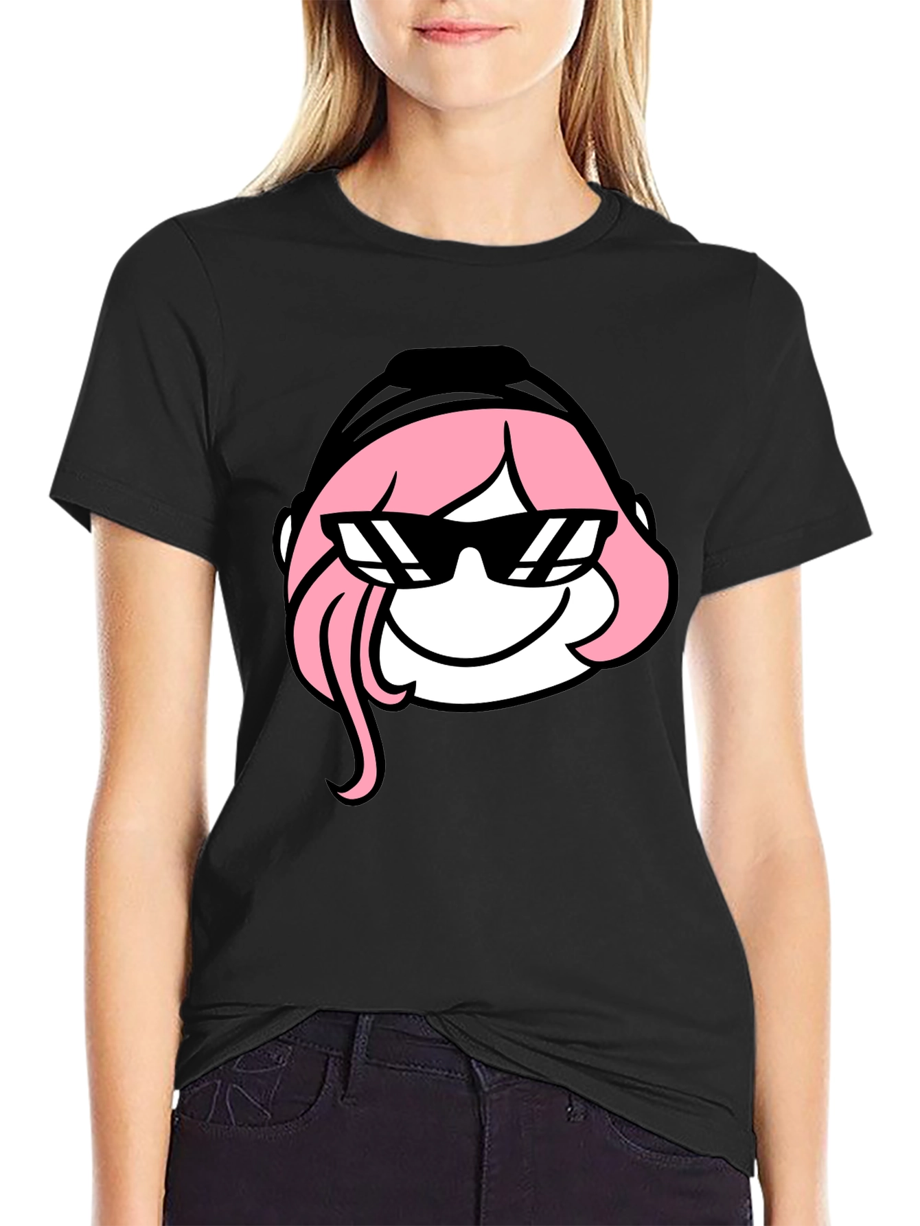 Show off your fun side with this stylish black t-shirt! It features a bold cartoon graphic of Anya with pink hair and cool sunglasses. This eye-catching design is printed on a comfortable, lightweight fabric, perfect for everyday wear. The classic crew neck and short sleeves make it a versatile piece for casual outfits. Whether you're hanging out with friends, heading to a convention, or just expressing your unique style, this Anya graphic tee is a must-have addition to your wardrobe. Grab yours today and let your personality shine!