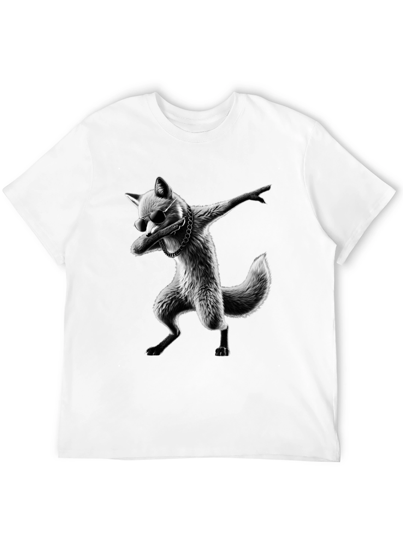 Show off your wild side with this eye-catching black t-shirt featuring a cool fox in a dabbing pose! The design showcases a grayscale fox wearing sunglasses and a chain necklace, giving it a trendy and playful vibe. Made from comfortable, breathable fabric, this tee is perfect for everyday wear. Its unique design makes it a great conversation starter and a fun addition to any wardrobe. Dress it up with a jacket or keep it casual with jeans. Ideal for anyone who loves animals, humor, or making a statement!