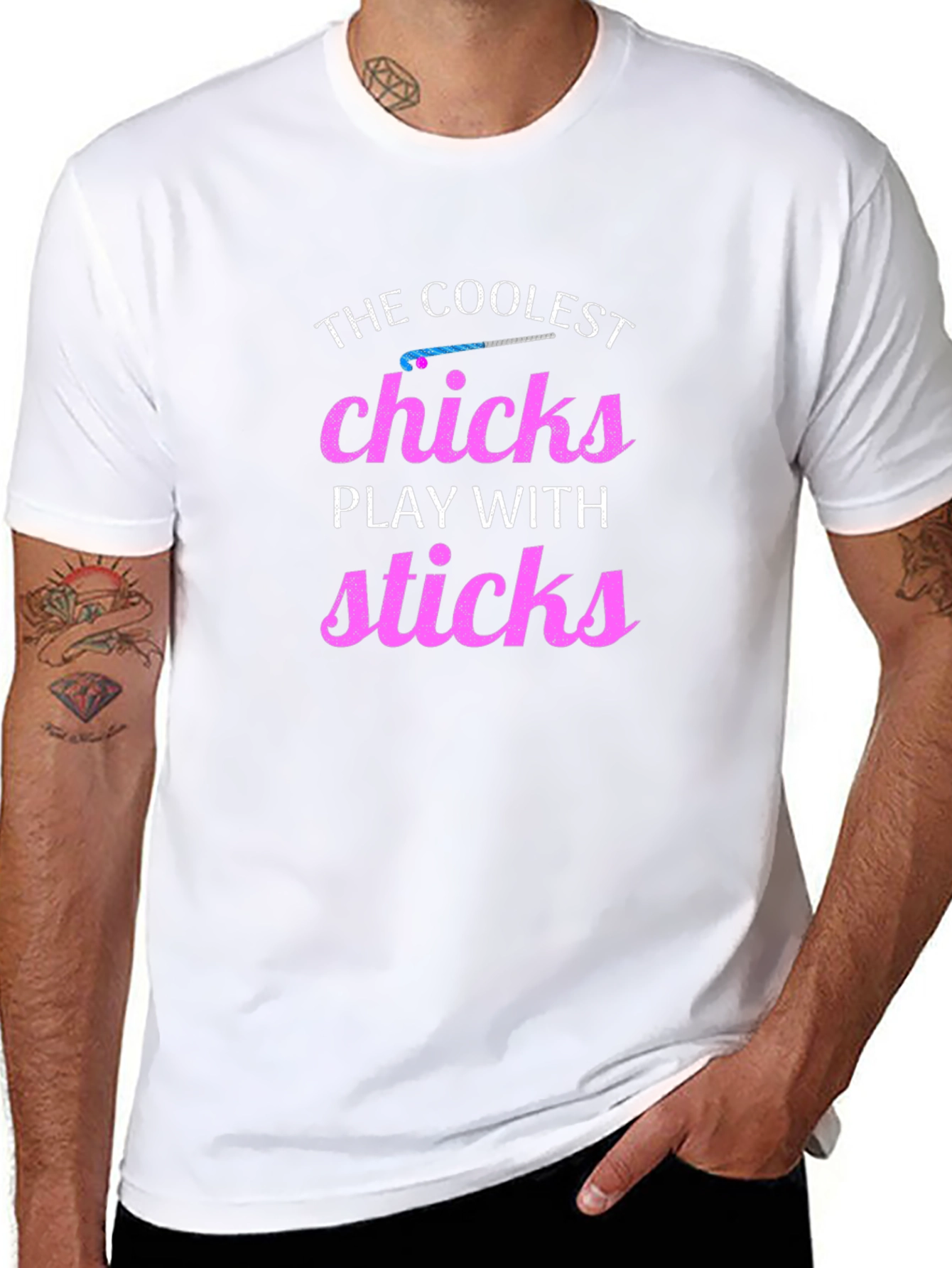 Show off your love for field hockey with this fun and flirty t-shirt! This black tee features the bold pink text "THE COOLEST chicks PLAY WITH sticks," accompanied by an eye-catching field hockey stick design. The playful slogan and vibrant design are sure to turn heads. Crafted from comfortable materials, this t-shirt is perfect for casual wear, sports events, or lounging around. It's a great way to express your personality and passion for the game. Whether you're a seasoned player or simply a fan, this t-shirt is a must-have addition to your wardrobe.