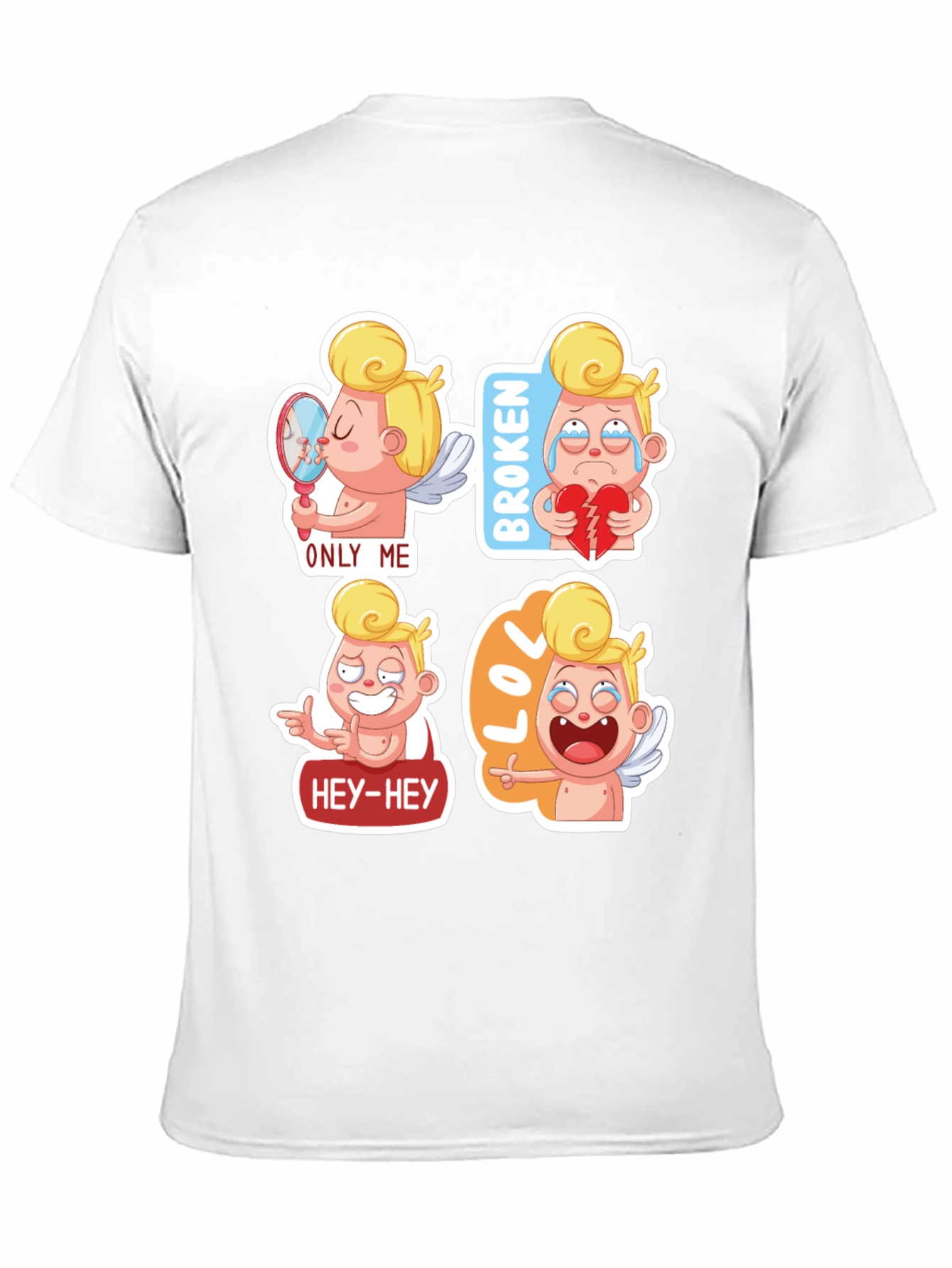 Show off your love of emojis with this fun Cupid T-shirt! This black tee features a collage of Cupid emojis expressing different emotions: love struck, broken-hearted, and silly. Made of a soft, comfortable material, this shirt is perfect for casual wear or as a unique Valentine's Day gift. Express your personality and sense of humor with this trendy and eye-catching shirt. Great for everyday wear, parties, or as a statement piece. Get yours today and spread the love...or a laugh!