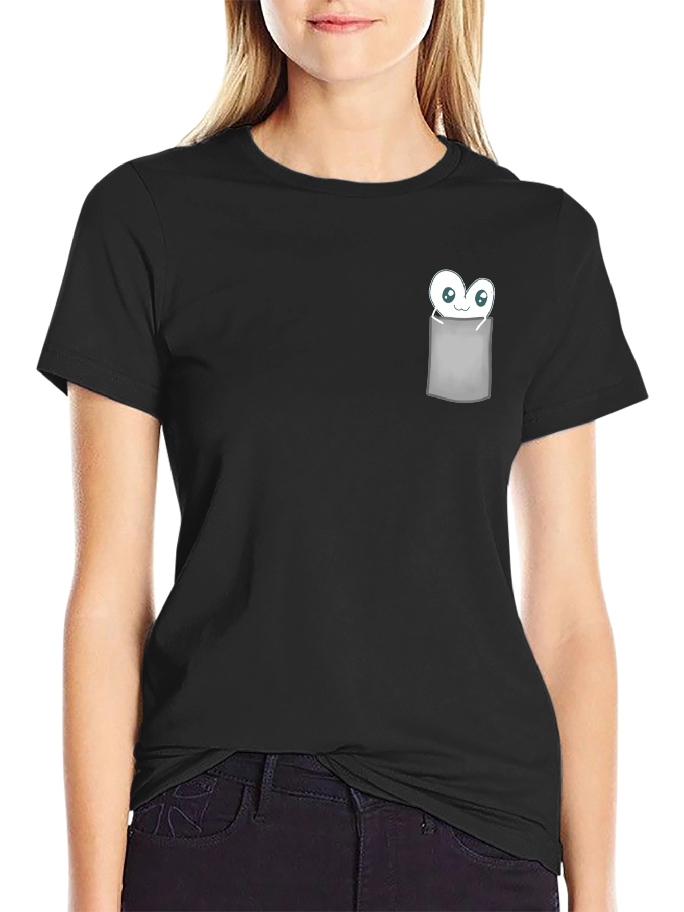 Show off your playful side with this eye-catching black t-shirt. Crafted from a soft, comfortable fabric, this tee features a unique graphic of a charming cartoon monster peeking out from a faux pocket. The design adds a touch of whimsy and fun to your everyday style. The classic crew neck and short sleeves offer a relaxed fit, making it perfect for casual outings, lounging at home, or expressing your unique personality. This t-shirt is sure to be a conversation starter and a fun addition to your wardrobe. Get yours today and let your inner monster shine!