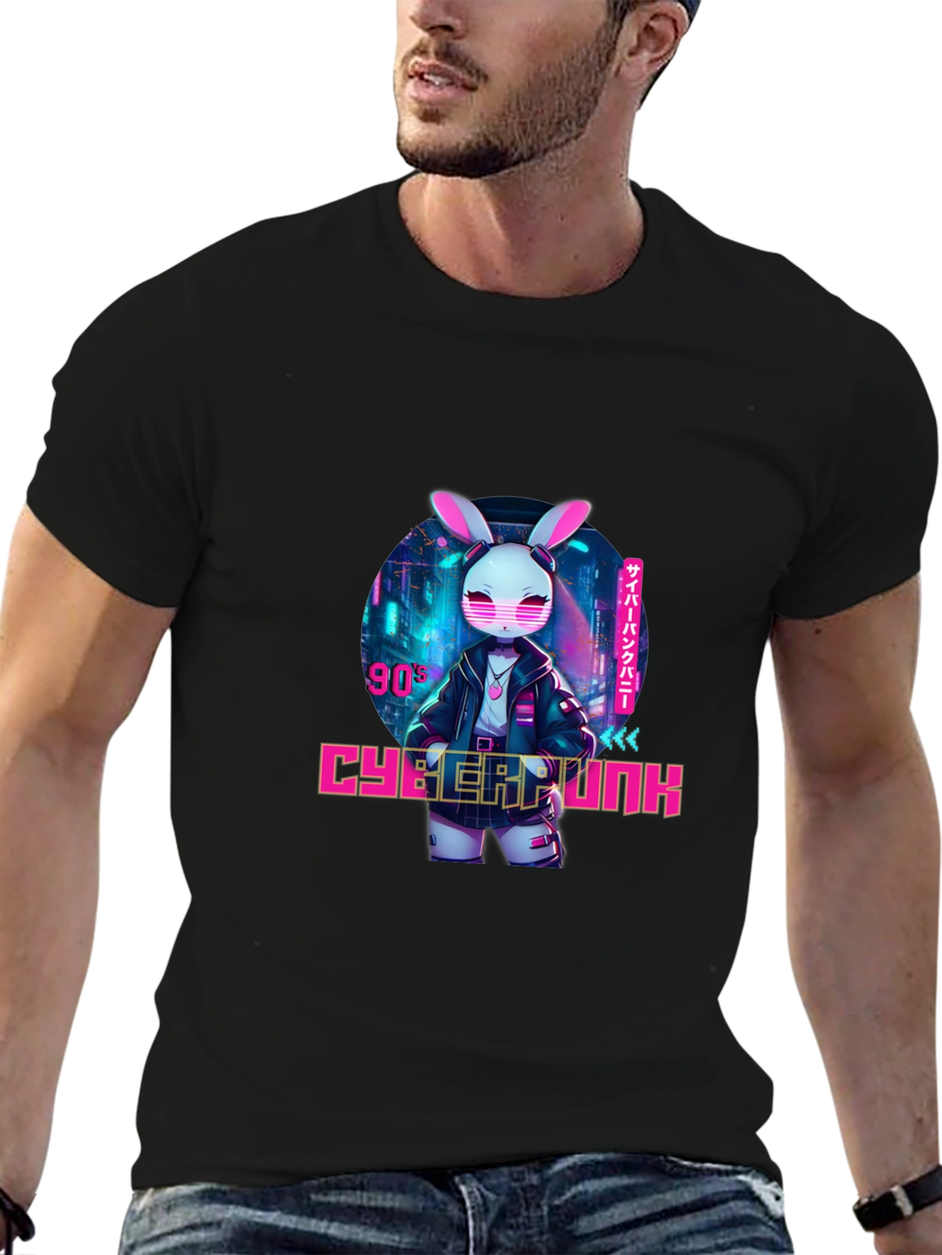 Step into the neon-lit world with this Cyberpunk Bunny T-Shirt. Featuring a cool, futuristic rabbit character, complete with shades and a stylish jacket, this tee is a must-have for cyberpunk fans. The vibrant design pops against the classic black background, making a bold statement. Made from a comfortable material, it’s perfect for everyday wear or special occasions. Show off your unique style and embrace the fusion of retro and future with this eye-catching tee. Perfect for casual outings, gaming events, or just making a statement.