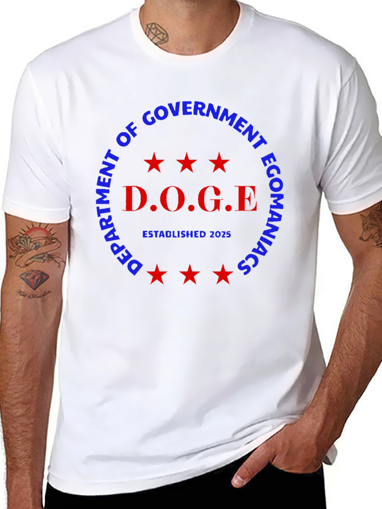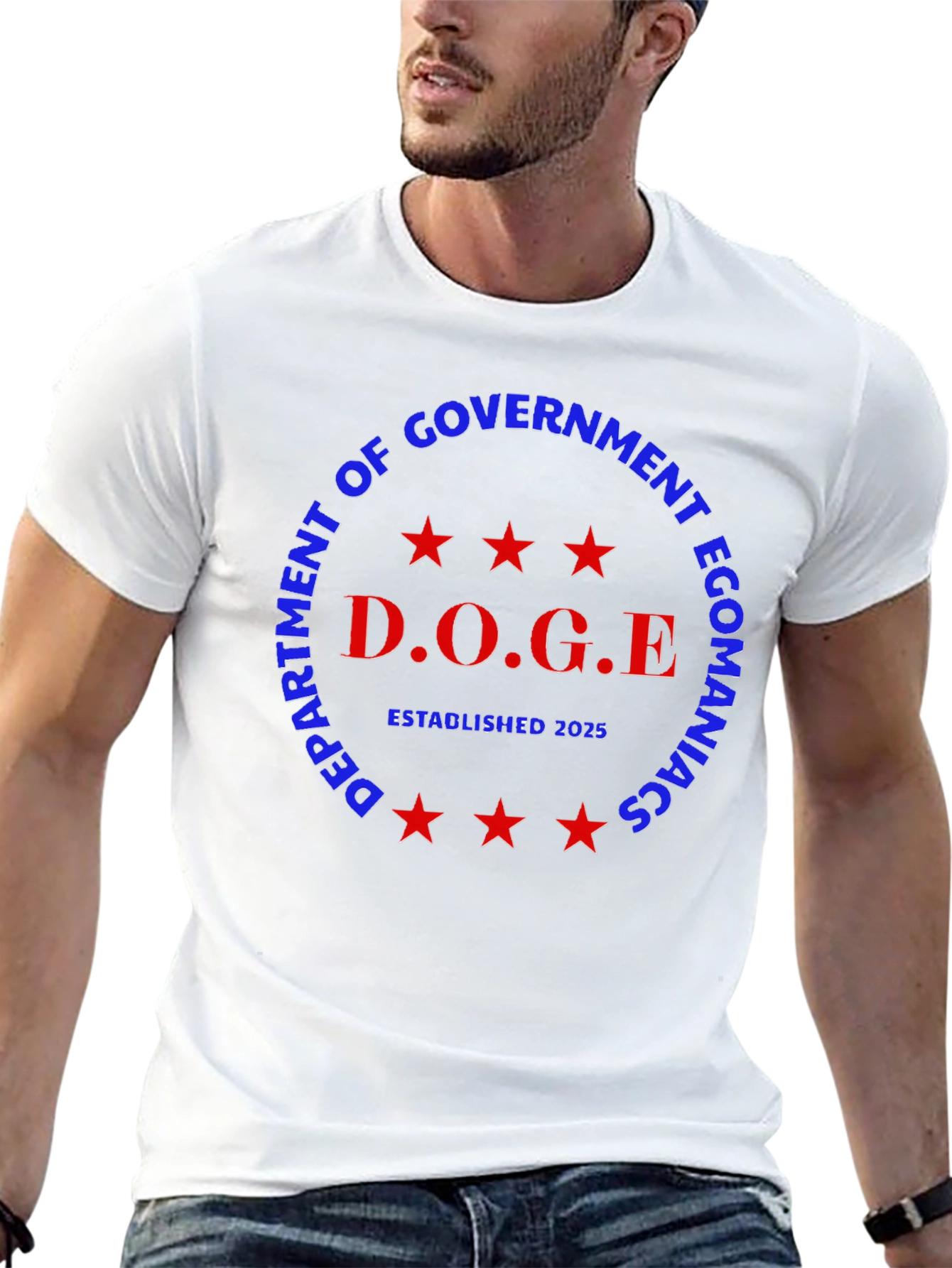 Show off your econ expertise with the D.O.G.E Department T-shirt! This striking black tee features a bold, circular design. With "Department of Government Econmaniacs" in blue around the edge, and "D.O.G.E" in the center accented by red stars and "Established 2025" underneath, this shirt makes a statement. Ideal for casual wear, it's a fun way to showcase your economic passions. Get yours today!