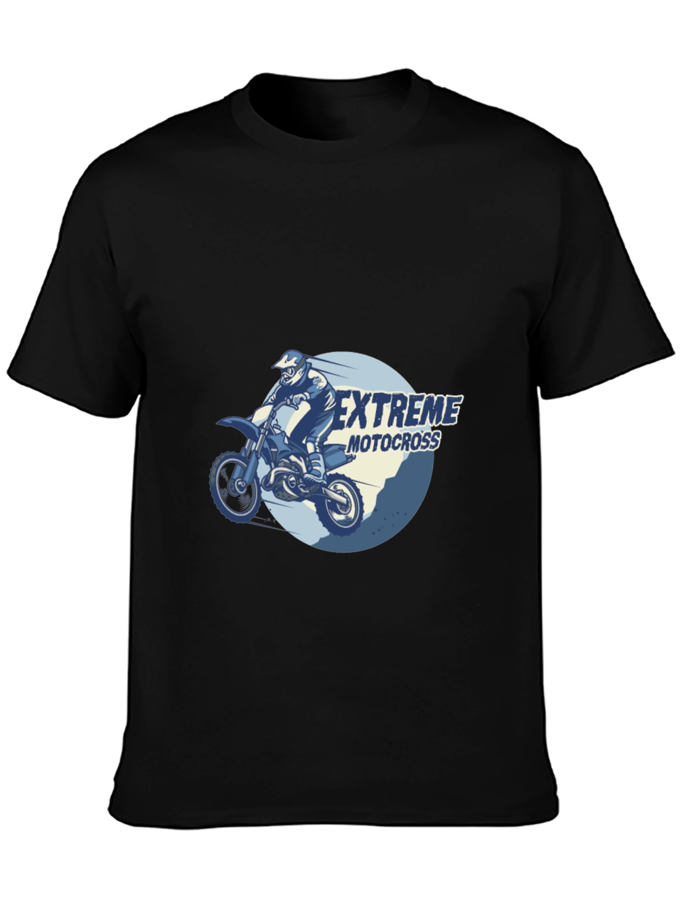This black t-shirt features a bold graphic design that's perfect for motocross enthusiasts. The design shows a rider and bike, emphasizing the word "EXTREME MOTOCROSS." Made from comfortable fabric, it's ideal for casual wear, showing off your passion for extreme sports. Whether you're hitting the trails or just hanging out, this tee makes a statement.