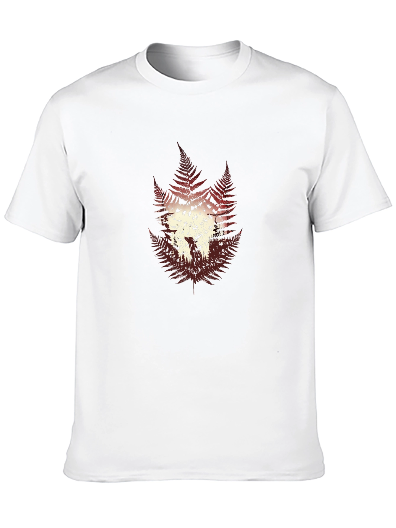 This stylish men's black t-shirt features a striking graphic print of a fern forest. The design uses a unique blend of silhouettes and shading to create a mesmerizing visual effect, reminiscent of the great outdoors. Crafted from comfortable fabric, this tee is perfect for casual wear, outdoor adventures, or as a statement piece for everyday style. With its eye-catching design and comfortable fit, this t-shirt is sure to become a wardrobe favorite. The dark color makes the graphic design pop, ensuring you'll stand out wherever you go. Ideal for nature lovers and anyone with an appreciation for unique graphic tees. Perfect with jeans, shorts, or layered under a jacket.
