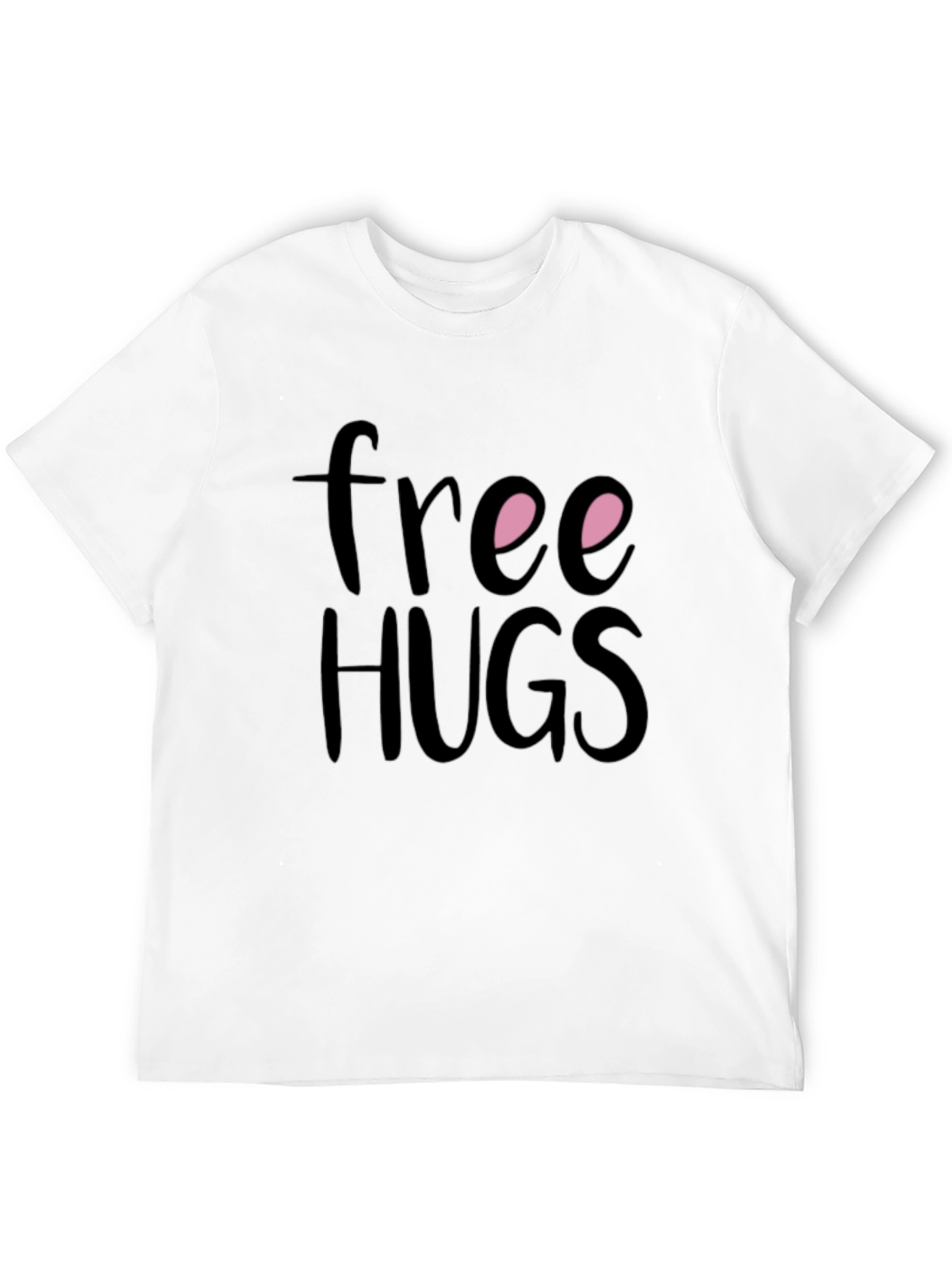 This classic black t-shirt features a playful 'Free Hugs' design with a whimsical touch. The soft-feel fabric ensures all-day comfort. This t-shirt is perfect for casual wear, making a statement, or showing your friendly side. This tee is sure to be a conversation starter and a fun addition to your wardrobe. Enjoy the comfort and style of this eye-catching tee.