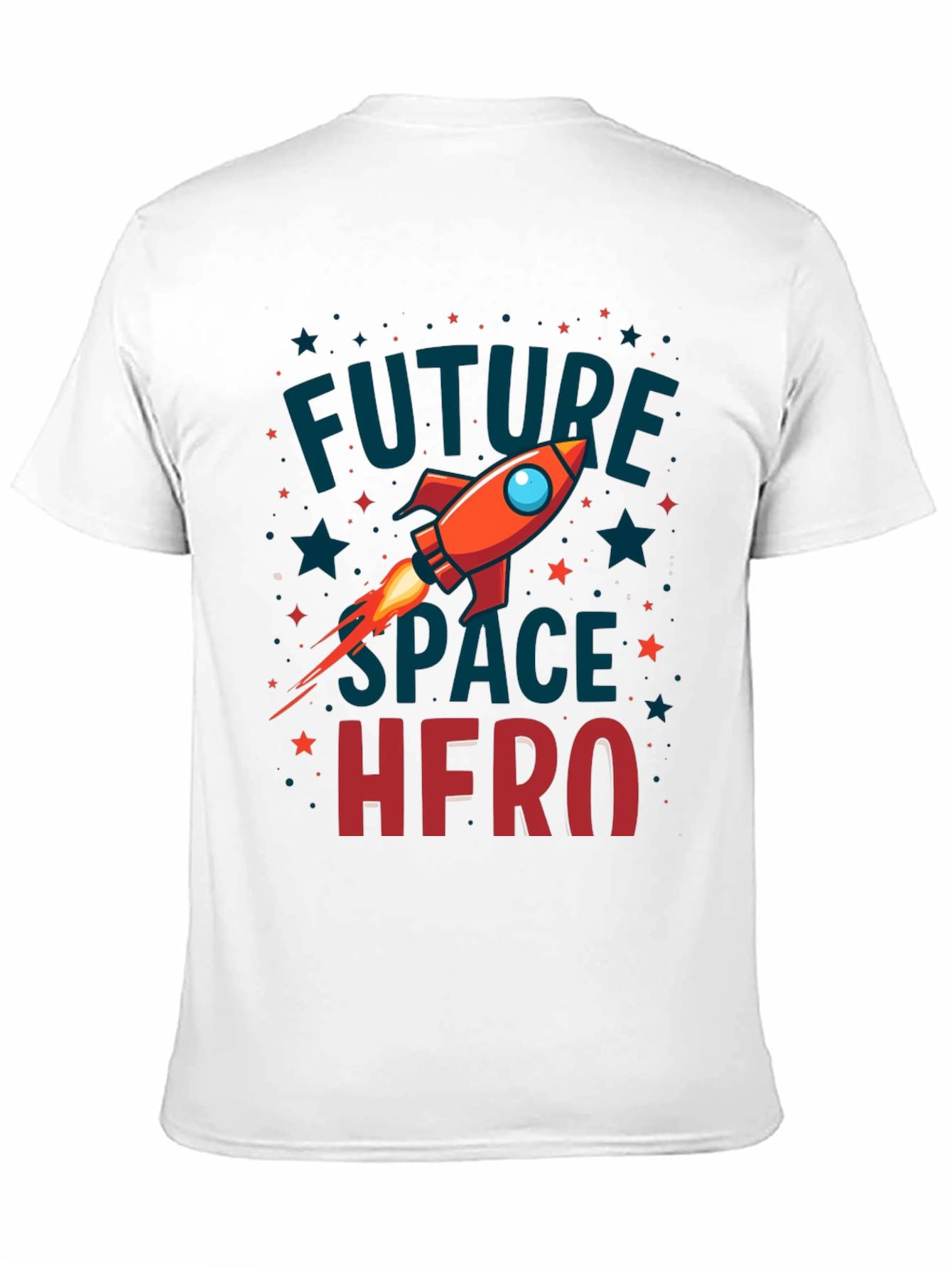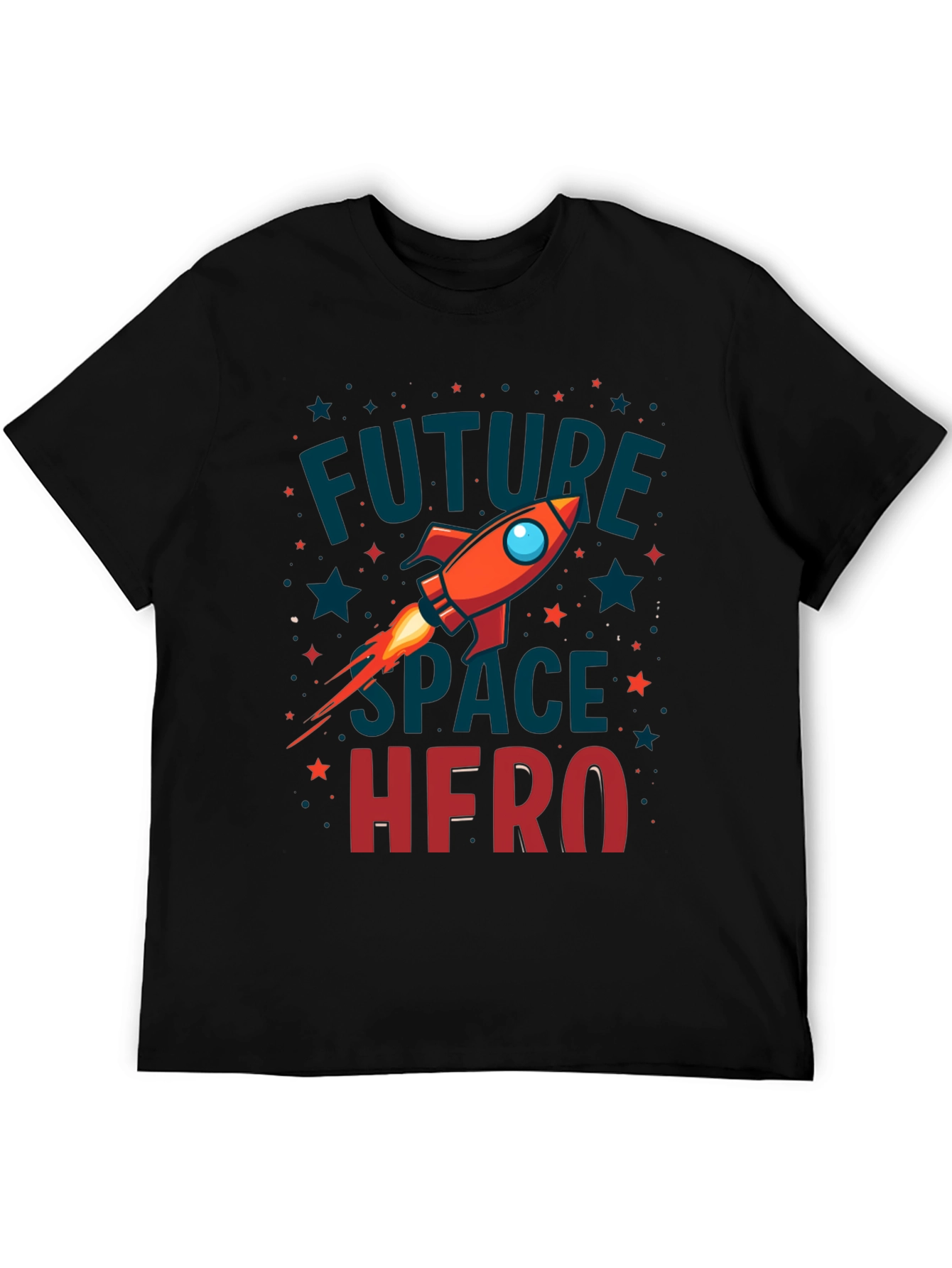 Blast off into style with this eye-catching graphic tee! Featuring a vibrant rocket ship soaring among stars, the design proclaims "Future Space Hero" in bold lettering. The shirt appears to be made from a comfortable, dark-colored material, perfect for everyday wear. This tee is ideal for aspiring astronauts, space enthusiasts, or anyone who dreams of reaching for the stars. Whether you're exploring the galaxy in your imagination or just hanging out with friends, this shirt is sure to make a statement. Add a touch of cosmic charm to your wardrobe today!