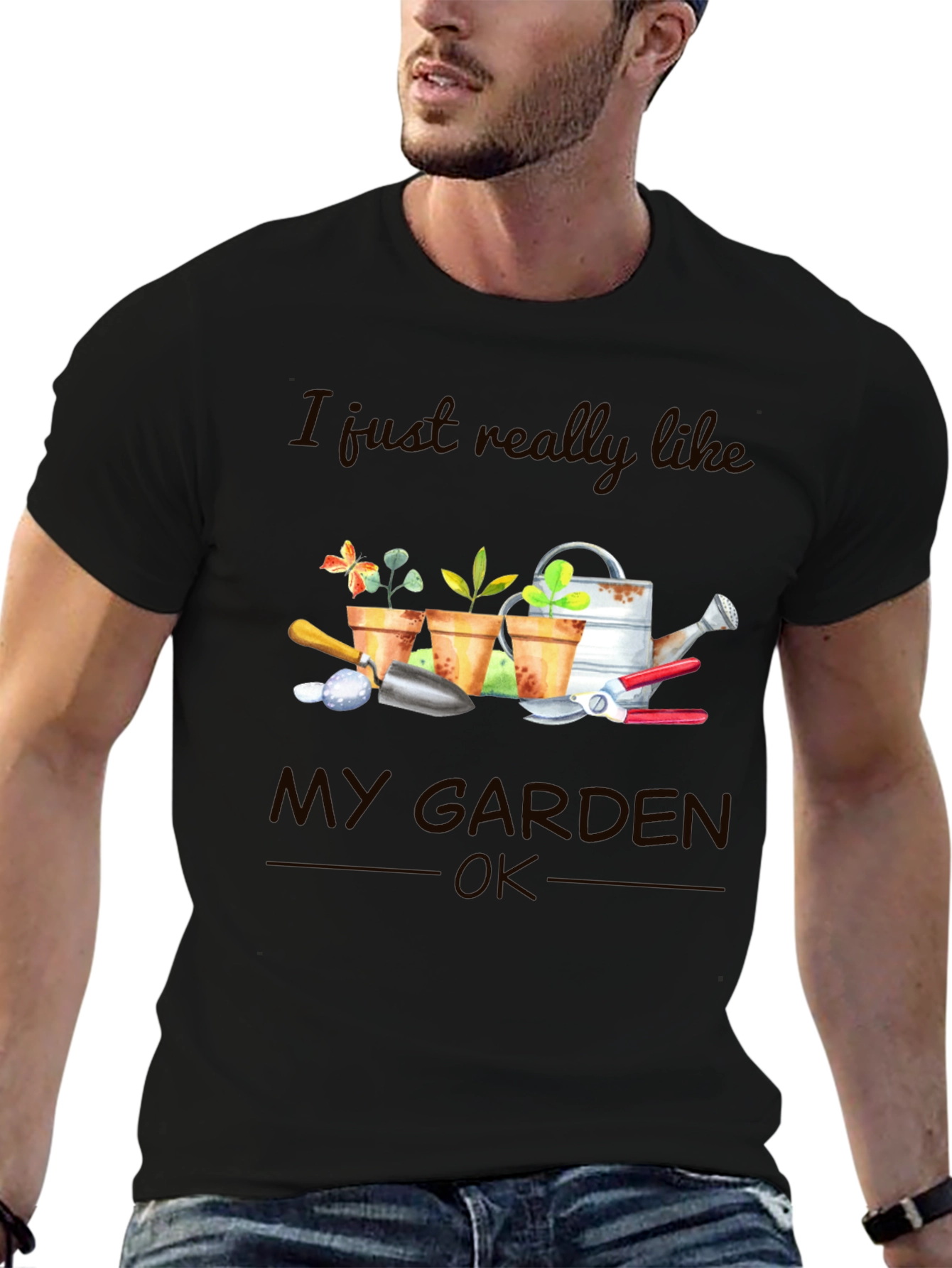 Show off your love for gardening with this unique t-shirt! Featuring a charming design with potted plants, a watering can, gardening tools, and the phrase "I just really like MY GARDEN OK", this shirt is perfect for any plant enthusiast. Made from soft, comfortable material, it’s ideal for everyday wear, whether you're tending to your garden or simply relaxing outdoors. A great gift for gardeners and plant lovers!