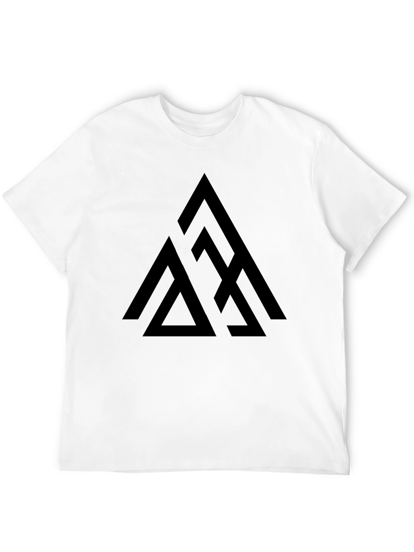 Showcase modern style with this sleek, black t-shirt. Crafted from soft, comfortable fabric, this tee features a unique geometric triangle design on the chest. The bold, minimalist graphic adds a contemporary edge, making it perfect for casual wear or layering under a jacket. The classic crew neck and short sleeves offer a relaxed fit. Ideal for everyday wear, concerts, or casual hangouts. Add a touch of modern art to your wardrobe with this versatile and stylish t-shirt.