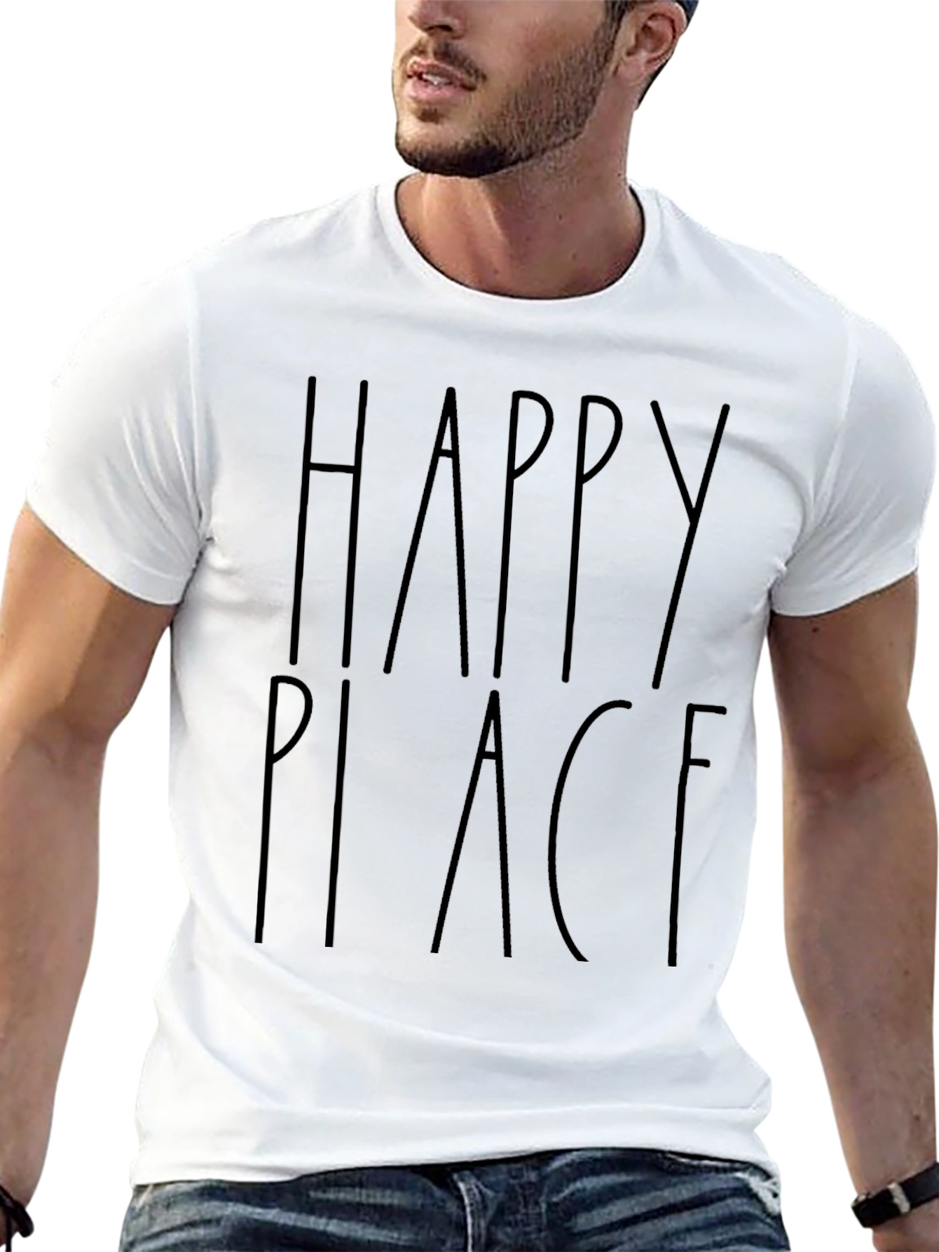 Embrace comfort and positivity with this stylish black "Happy Place" graphic tee. The shirt features a minimalist, modern design with the phrase "HAPPY PLACE" printed vertically in a clean, slender font. Crafted from a soft, breathable fabric, this tee offers all-day comfort and a relaxed fit. Perfect for casual outings, lounging at home, or as a thoughtful gift. Pair it with jeans, shorts, or leggings for a versatile and effortless look. Showcase your happy vibes with this trendy and comfortable tee.