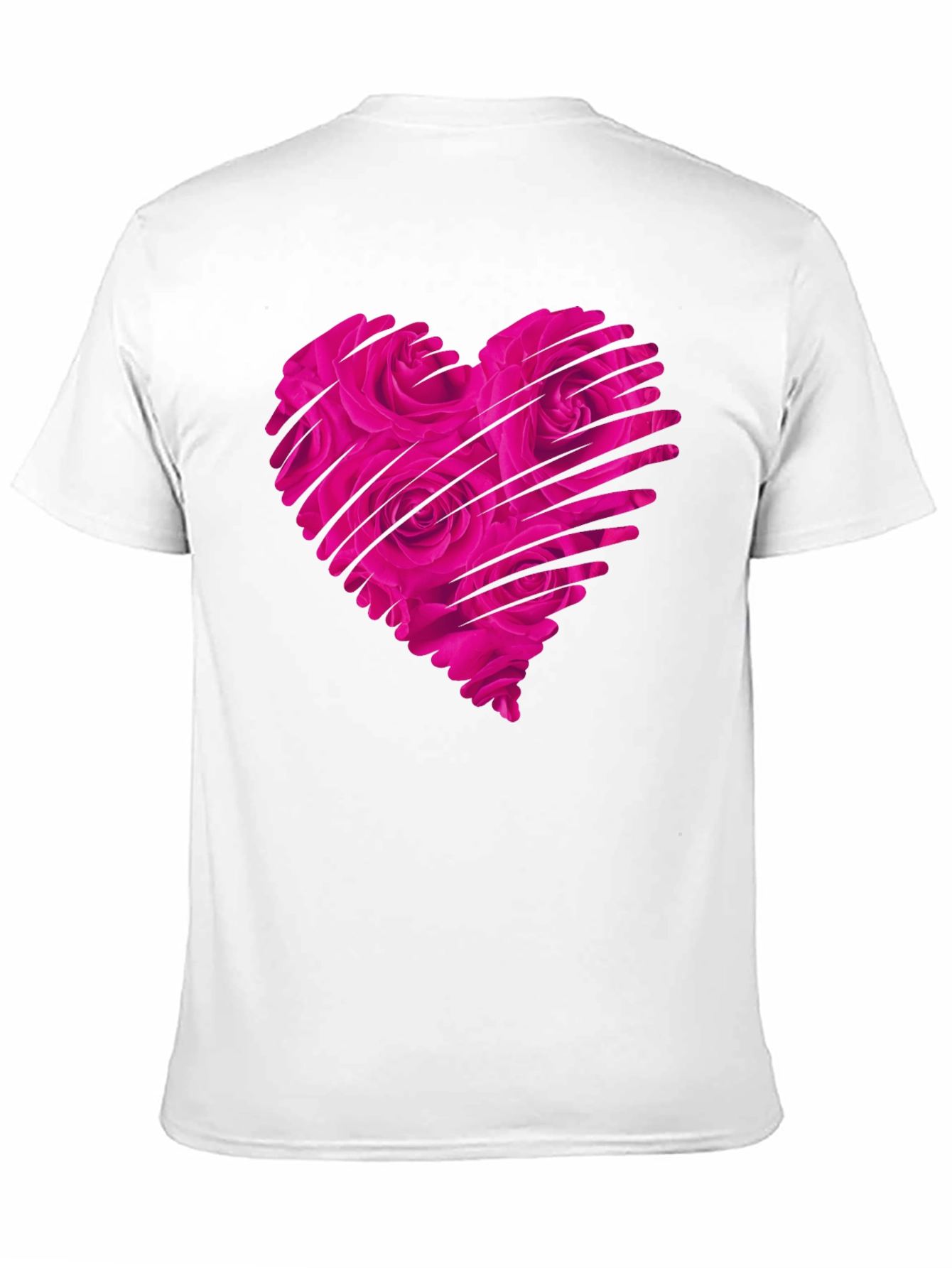 Show your love with this stylish men's black t-shirt. Featuring a unique heart design filled with vibrant pink roses, it's perfect for expressing affection. The heart is overlaid with eye-catching black stripes, giving it a modern, edgy twist. Made from comfortable fabric, this tee is ideal for casual wear, dates, or special occasions where you want to make a statement. Grab this distinct t-shirt and wear your heart on your sleeve—literally! A great gift for that special someone. It is sure to make a statement.