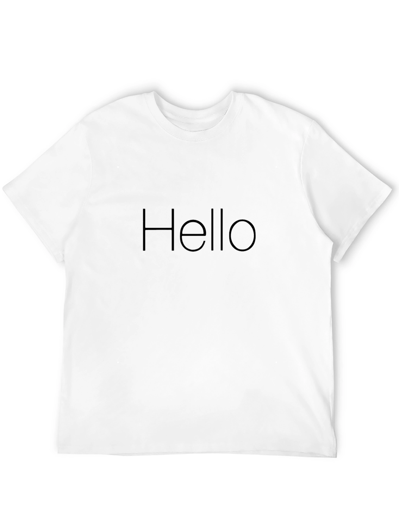 Elevate your casual style with this minimalist black t-shirt. The shirt features a simple, elegant "Hello" design, rendered in a subtle, matching black that offers a unique understated look. Made from soft, breathable fabric, this tee ensures all-day comfort. Its classic cut makes it versatile, perfect for pairing with jeans, shorts, or even layering under a jacket. Ideal for everyday wear, this t-shirt adds a touch of modern sophistication to any outfit. Show off your minimalist style and start your day with a simple greeting!