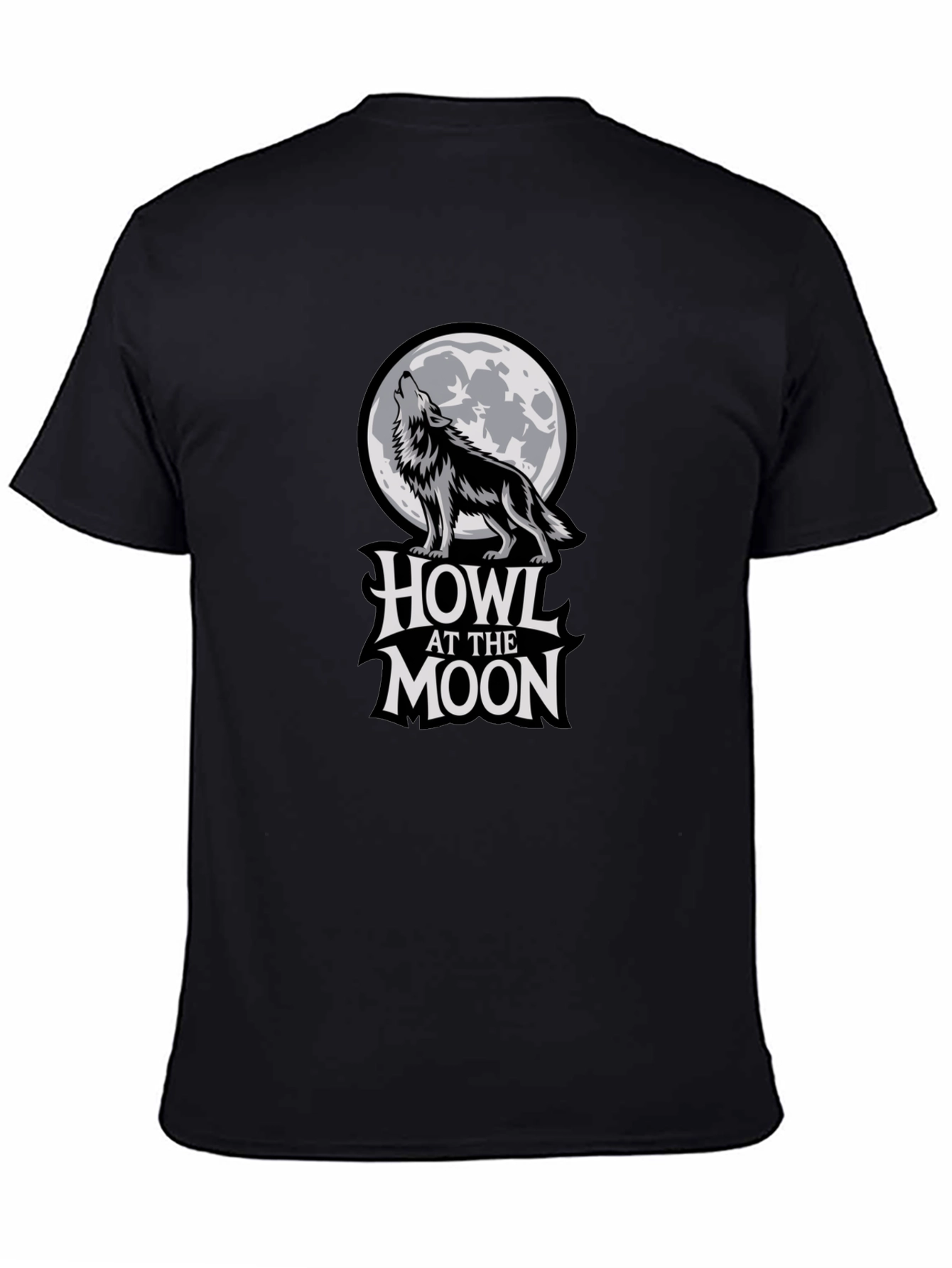 Embrace the night with this striking black graphic t-shirt! Featuring a bold design of a wolf howling at a full moon, accompanied by the words "Howl at the Moon," this shirt is perfect for those who appreciate a touch of the wild. Made from a comfortable-looking fabric, this tee is ideal for casual wear, concerts, or expressing your unique style. Pair it with jeans or shorts for an effortlessly cool look. Show off your love for nature and stand out from the crowd with this eye-catching t-shirt!