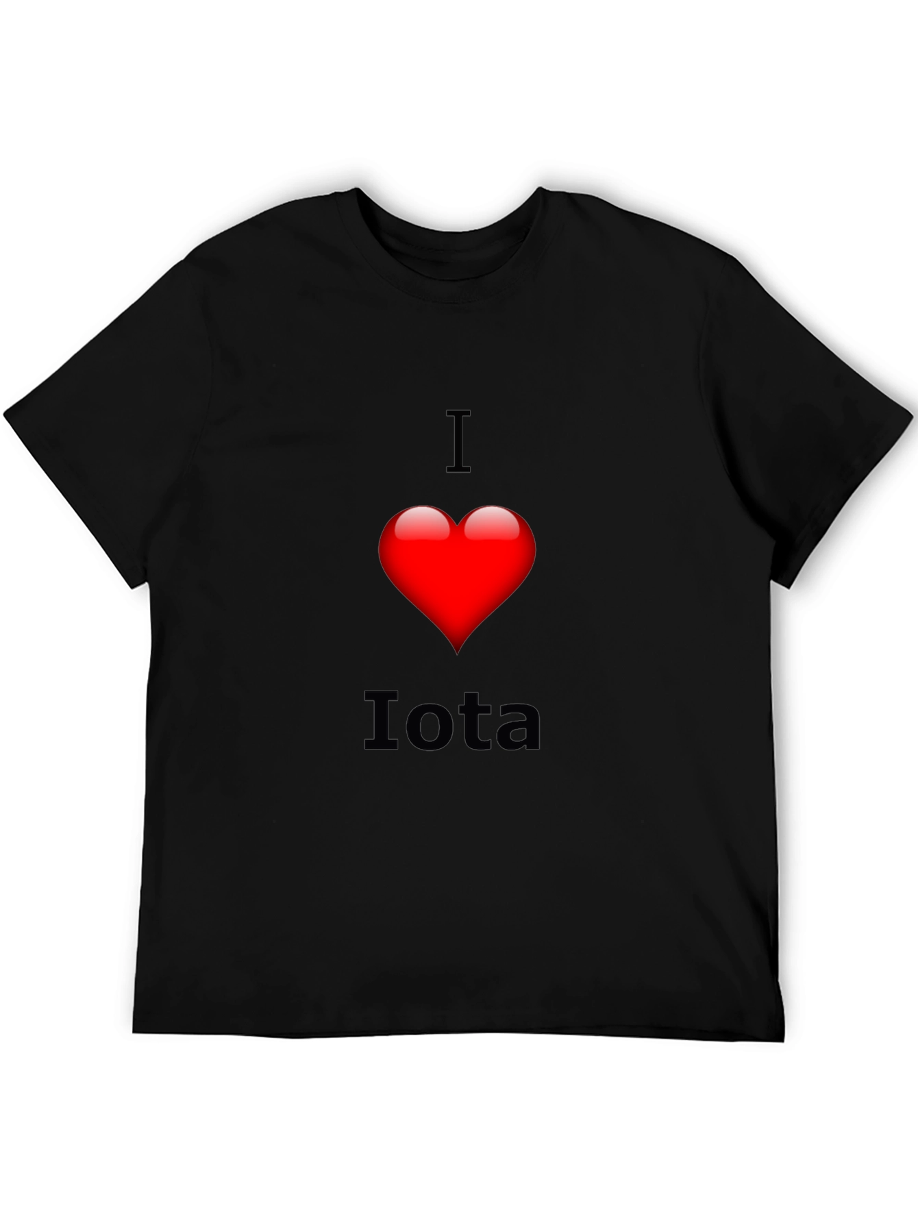 Show your love for Iota with this eye-catching black t-shirt! This casual tee features a bold design of 'I' followed by a vibrant red heart and the word 'Iota.' The striking contrast of the red heart against the black fabric ensures the design pops. Made from a soft, comfortable fabric, this shirt is perfect for everyday wear, casual outings, or showing support for Iota. A great conversation starter and a fun way to express your interests. The classic crew neck design ensures a comfortable fit for all. Get yours today and wear your passion!