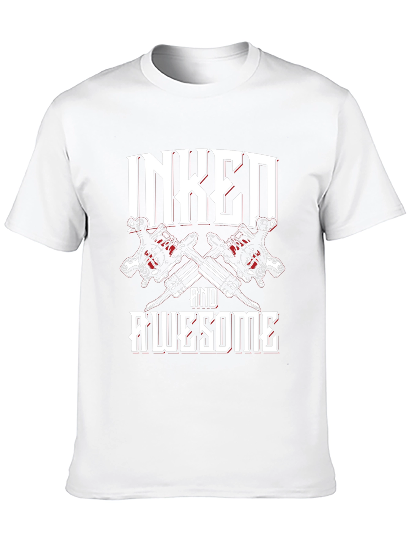 Show off your love for tattoos with this stylish black t-shirt. Featuring a bold "Inked and Awesome" graphic with tattoo gun imagery, this shirt is perfect for tattoo enthusiasts. The design is prominently displayed on a classic black tee, making it a great conversation starter. Made from comfortable material, this shirt is ideal for everyday wear or as a statement piece at tattoo conventions and events. Let everyone know you are proud to be inked!