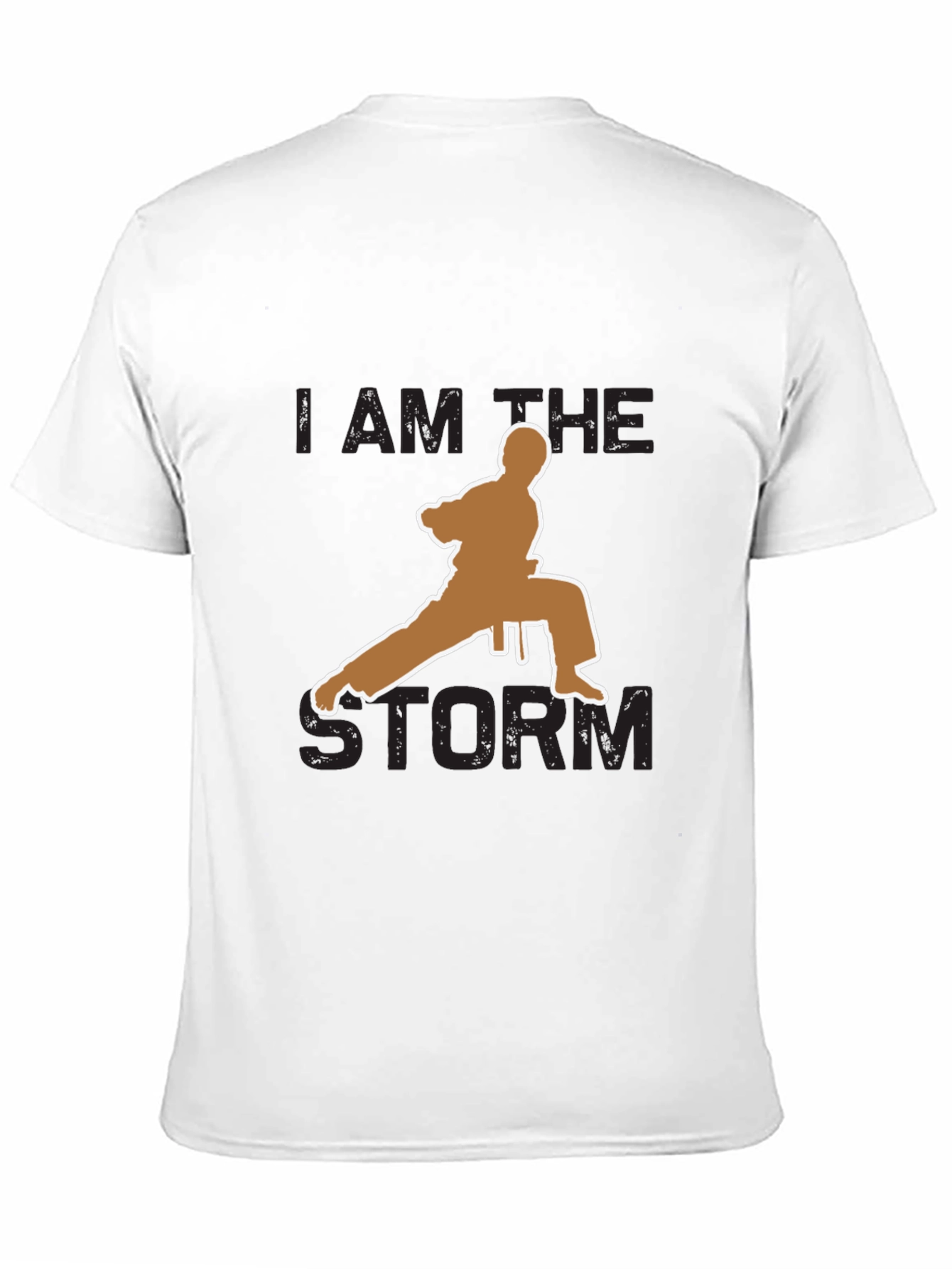 Unleash your inner strength with this bold "I Am The Storm" graphic tee. This black t-shirt features a striking brown silhouette of a martial artist in a dynamic karate pose, symbolizing power and resilience. The phrase "I AM THE STORM" is printed above and below the figure in a subtle gray font, adding an element of intimidation and motivation. Made from a comfortable-looking fabric, this tee is perfect for everyday wear, training sessions, or casual outings. Express your passion for martial arts and make a statement with this unique and eye-catching t-shirt.