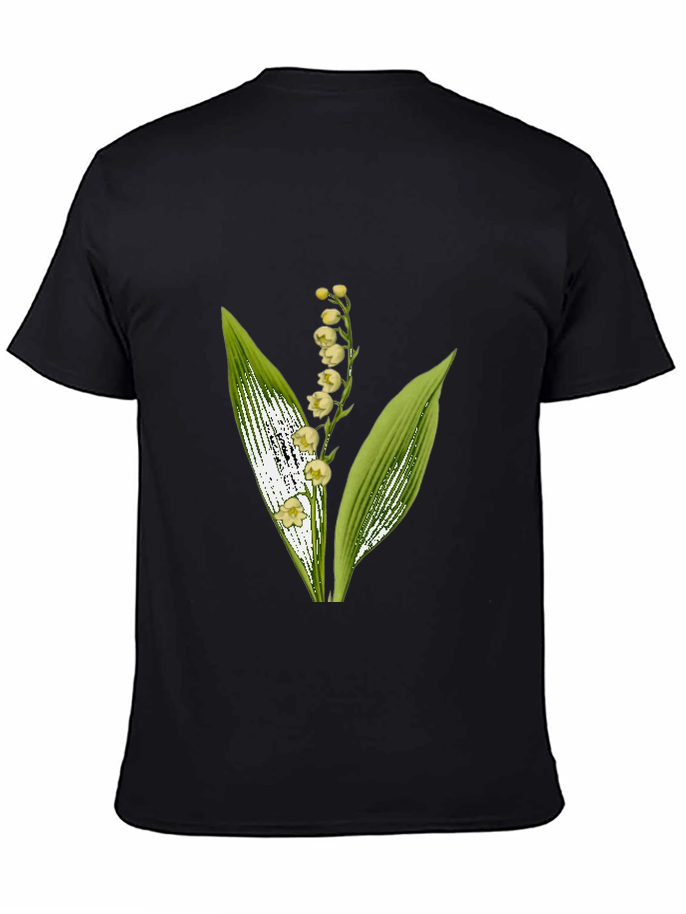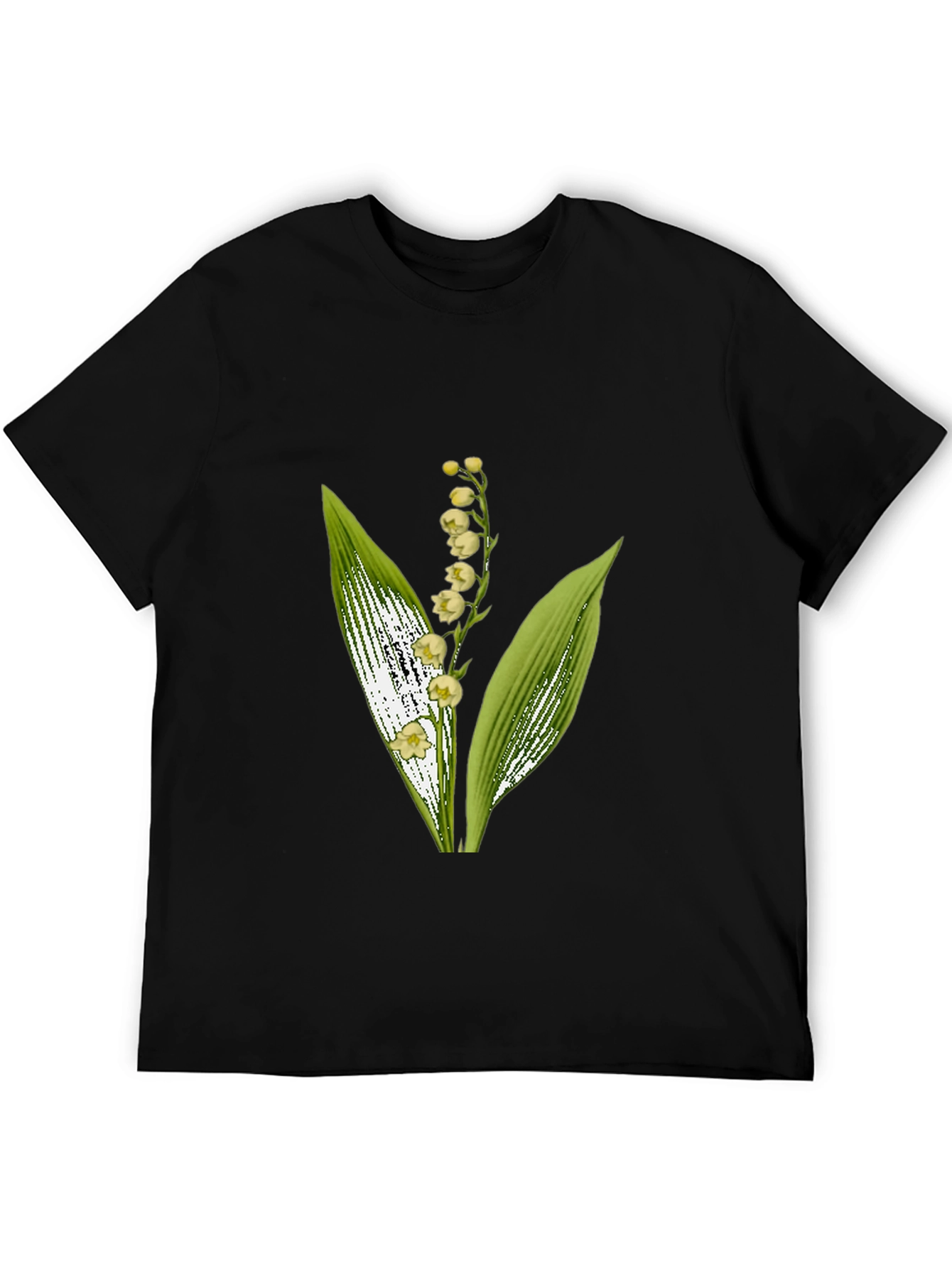 This classic black t-shirt features a vibrant Lily of the Valley graphic. The design is eye-catching and adds a touch of nature-inspired style to your everyday wear. Made from a comfortable, breathable fabric, this tee is perfect for casual outings, relaxed weekends, or layering under a jacket. Its versatile design makes it a great addition to any wardrobe. Show off your love for unique floral designs with this standout piece. Get yours today and elevate your casual style!