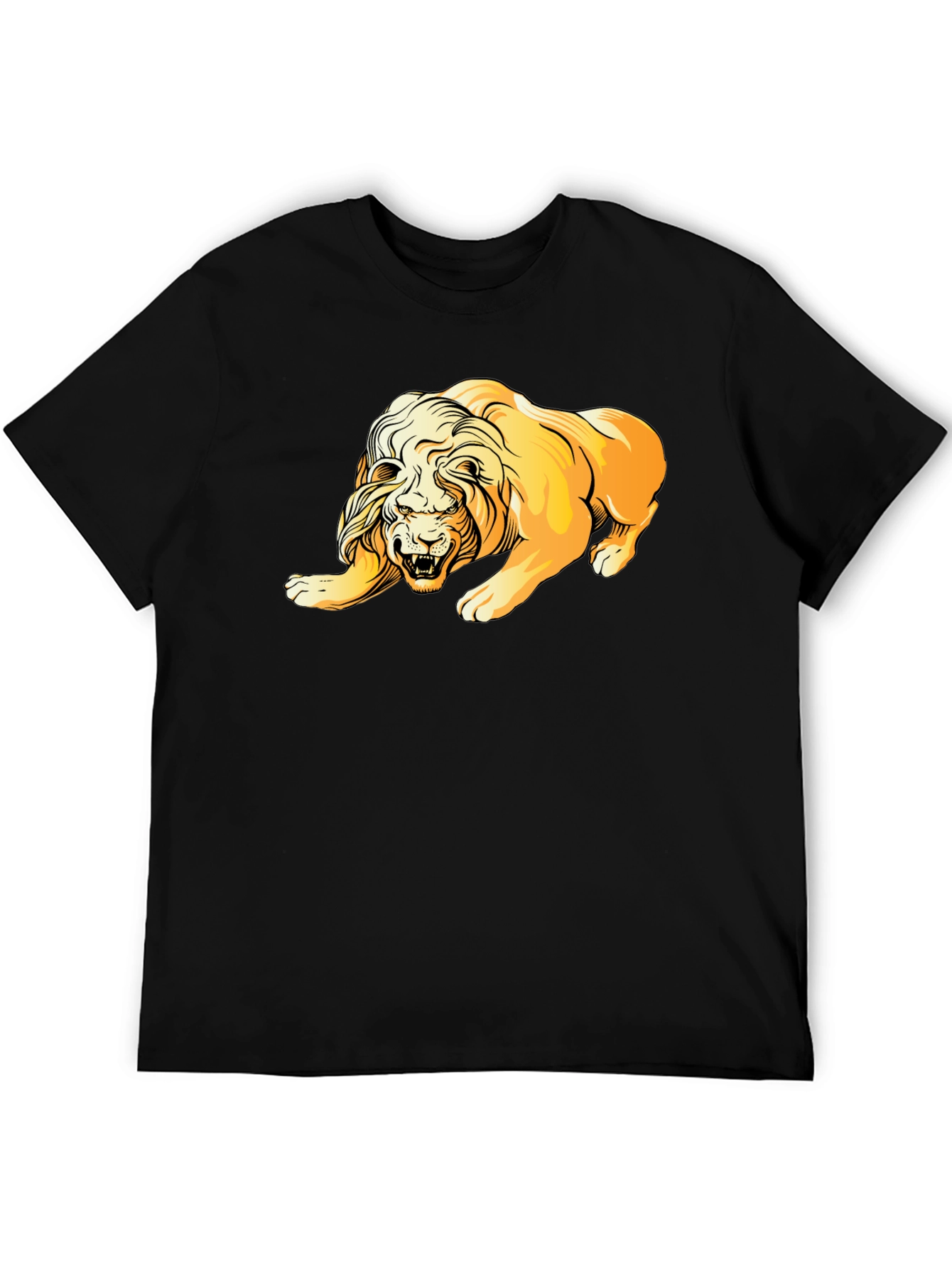 Unleash your inner roar with this striking black t-shirt featuring a bold lion graphic. The detailed, golden-hued design captures the majestic nature of the lion. Crafted from a comfortable fabric, this tee offers a relaxed fit for everyday wear. The print is vivid and durable, ensuring it remains a standout piece in your wardrobe. Perfect for casual outings, concerts, or as a unique statement piece. Show off your wild side with this eye-catching lion graphic tee.