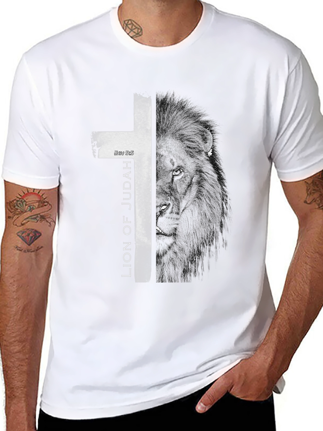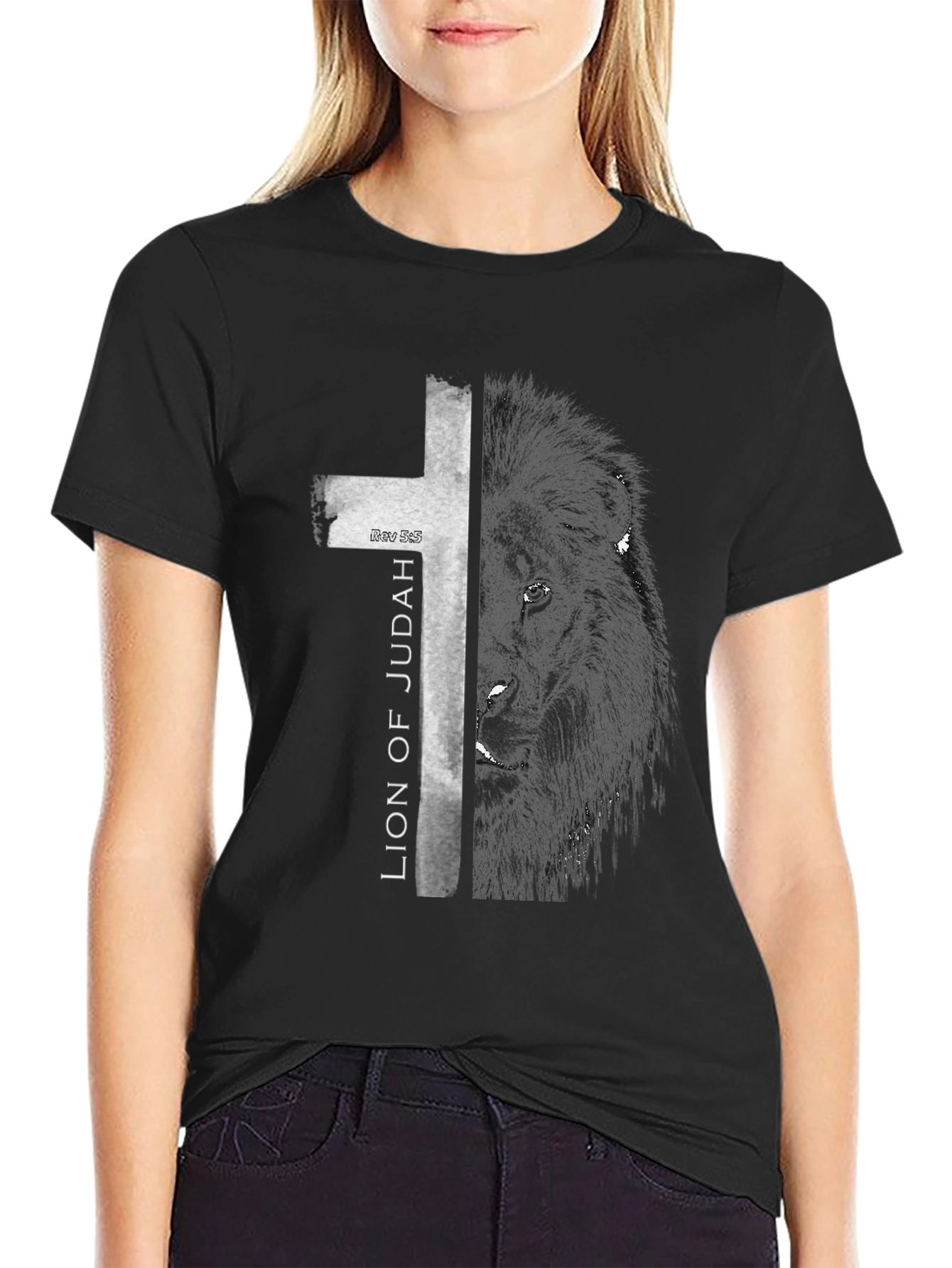 Showcase your faith with this striking black t-shirt featuring a unique Lion of Judah graphic. The design incorporates a cross with the text "Rev 5:5" and the words "LION OF JUDAH" alongside a powerful image of a lion. Made from comfortable, breathable fabric, this tee is perfect for everyday wear, church events, or casual outings. Its bold design makes a statement while providing a comfortable fit. Available in various sizes, this t-shirt makes a thoughtful gift for those seeking to express their spirituality with style.
