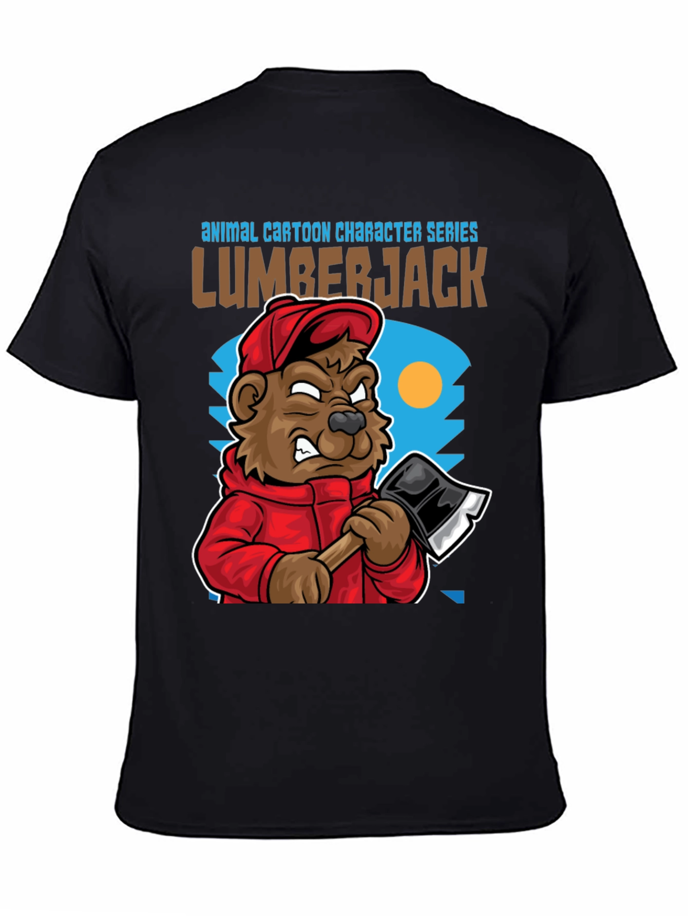 Show off your love for the great outdoors with this unique Lumberjack Bear T-Shirt! This cool tee features a cartoon bear character dressed as a lumberjack. Sporting a red cap and jacket, the bear holds an axe against a stylized forest backdrop. The words 'ANIMAL CARTOON CHARACTER SERIES' and 'LUMBERJACK' add to the design. Perfect for casual wear, this shirt is ideal for nature lovers, cartoon enthusiasts, or anyone with a fun sense of style. Make a statement with this eye-catching tee and embrace the adventurous spirit of the lumberjack!