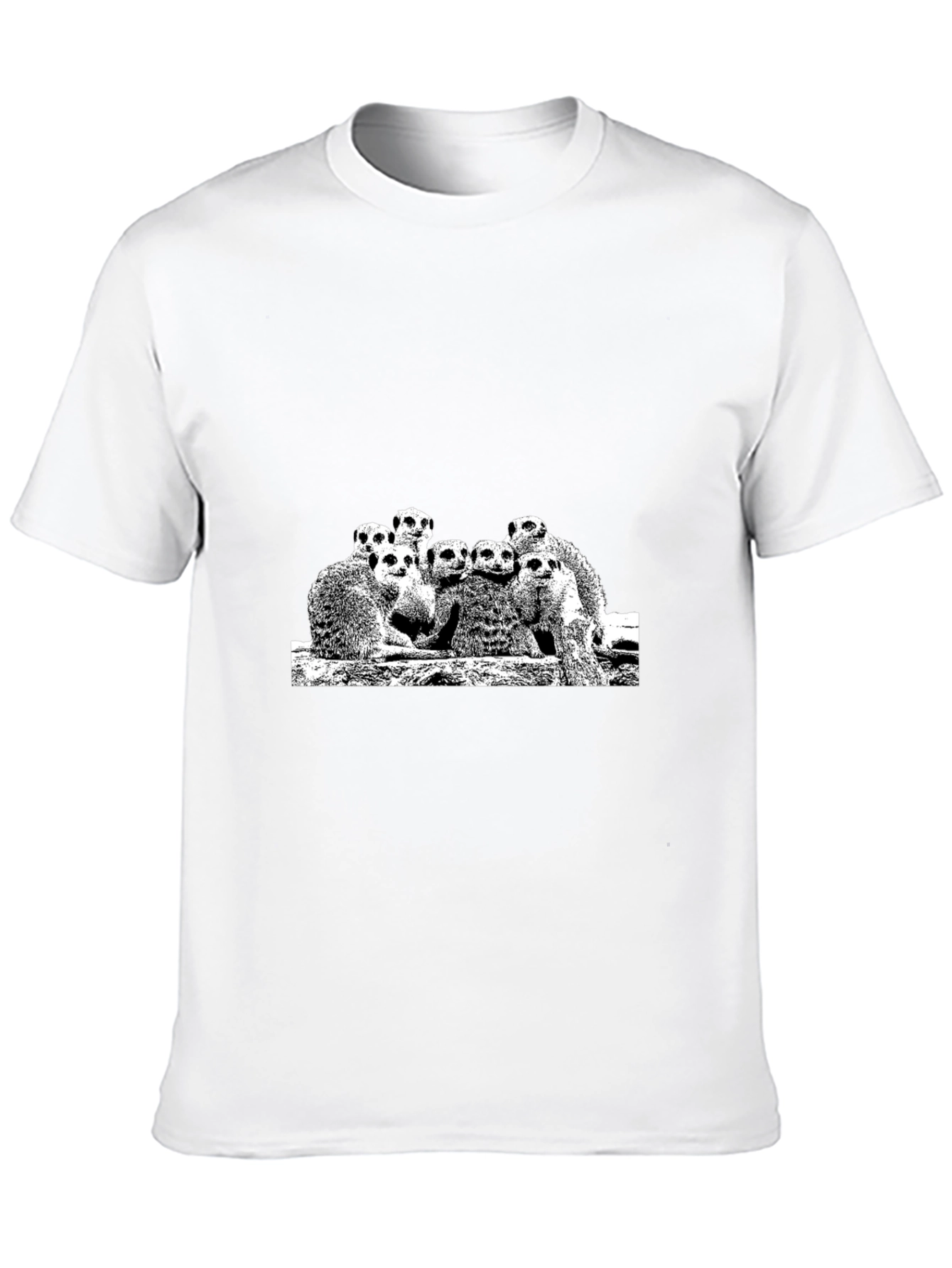 Show off your love for meerkats with this unique black t-shirt. Featuring a detailed graphic of a meerkat family, this shirt is perfect for animal lovers and anyone looking to add a touch of fun to their wardrobe. The design is printed on a comfortable, classic fit black tee. Wear it casually with jeans or dress it up with a blazer for a stylish look. It’s an eye-catching piece that expresses your individuality. Get yours today!