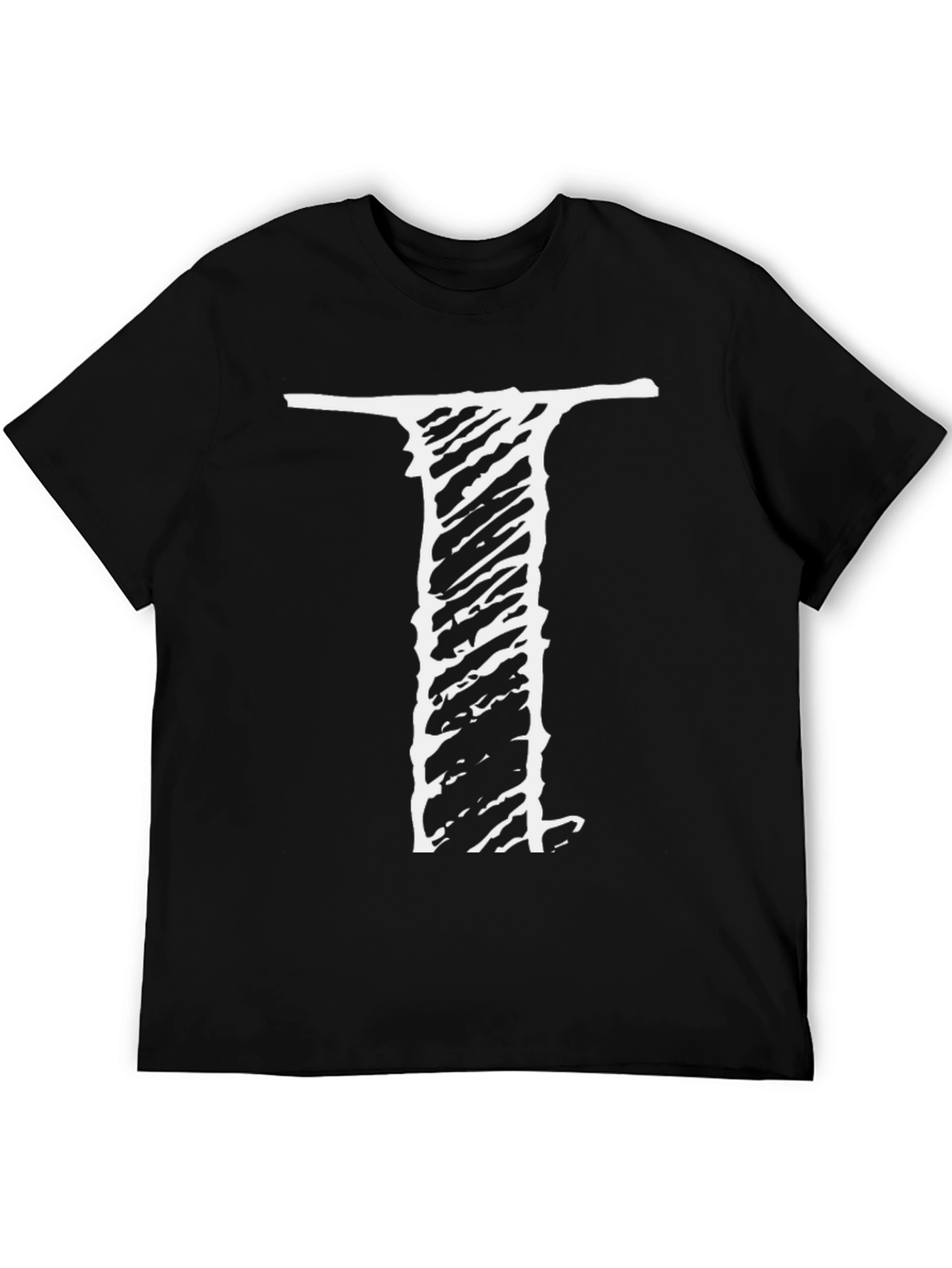 Make a bold statement with this stylish men's black t-shirt. The shirt features a striking, distressed-style letter "I" design printed prominently on the front. Crafted from what appears to be a comfortable cotton blend, this tee offers both style and breathability. The classic crew neck and short sleeves create a timeless silhouette, suitable for everyday wear. Whether you're going for a casual look or want to add an edgy touch to your outfit, this t-shirt is a versatile choice. Pair it with jeans, shorts, or layer it under a jacket for a cool, effortless style. Express your individuality and upgrade your wardrobe with this unique and eye-catching tee.