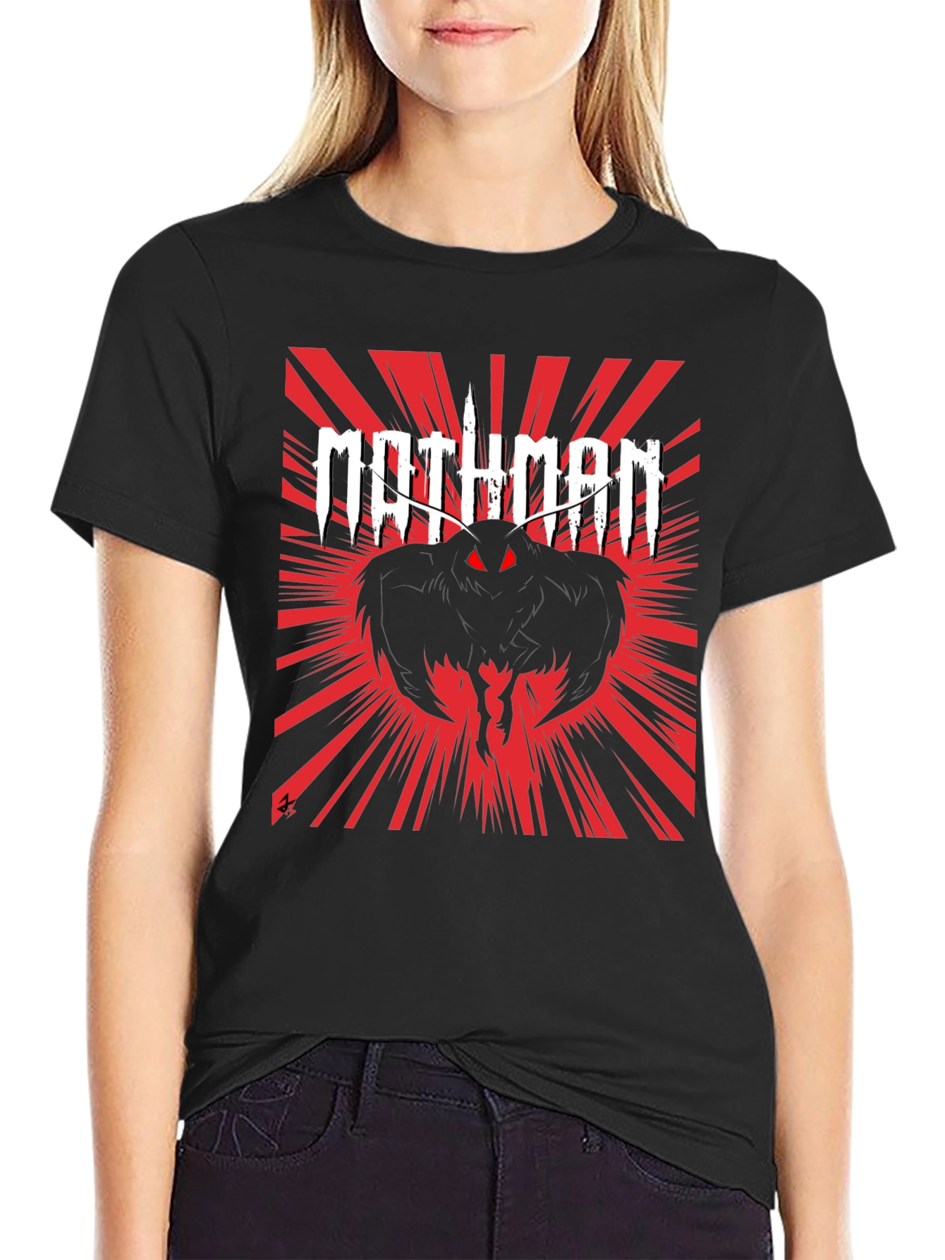 Show off your love for cryptids with this striking Mothman graphic tee. The shirt features a bold Mothman design with red accents on a black, soft-touch fabric. The word "Mothman" is printed in distressed white. The striking graphic is a nod to the legendary cryptid. Perfect for casual wear, conventions, or any occasion where you want to express your unique style. Get yours today and embrace the mystery!