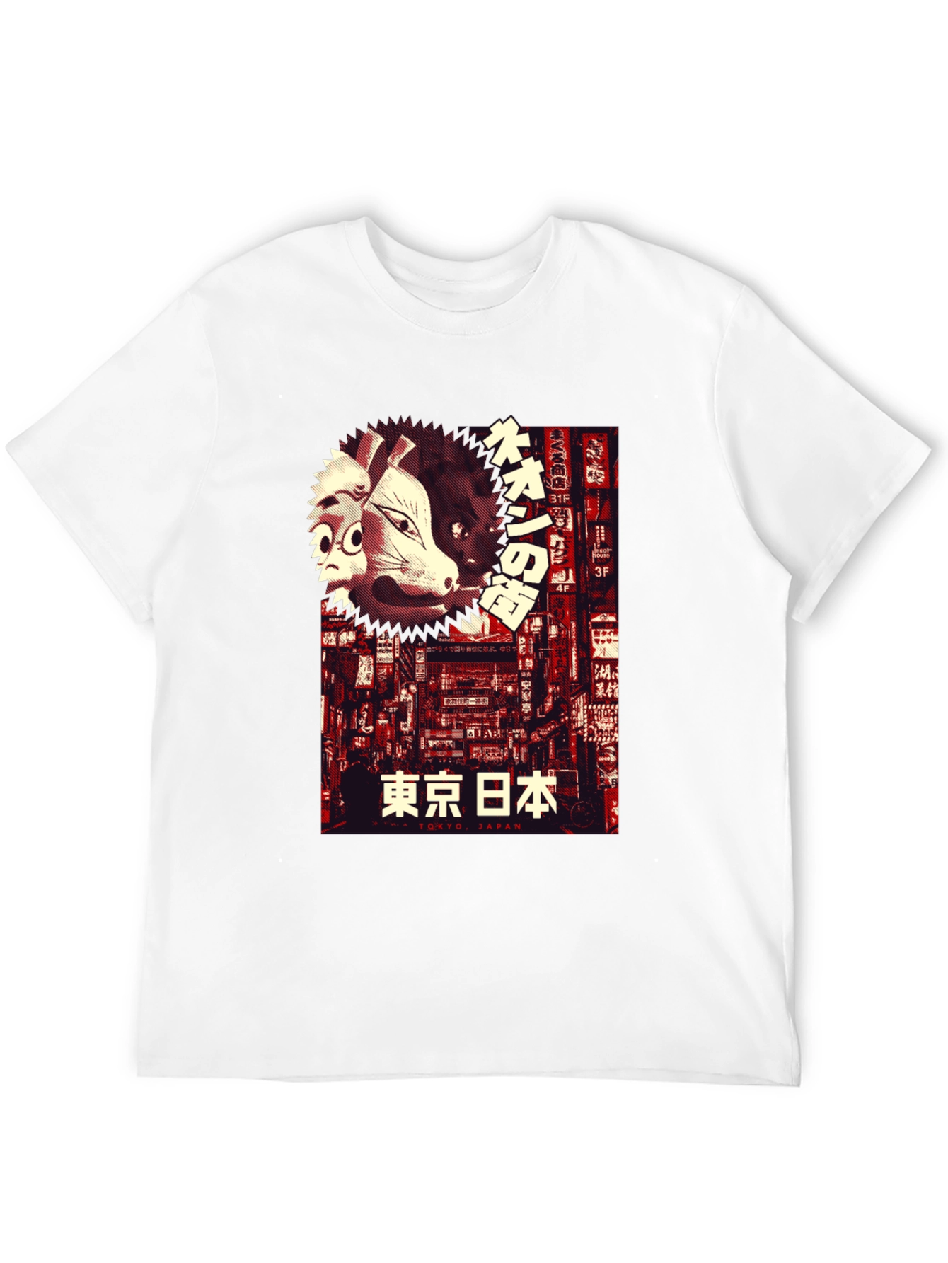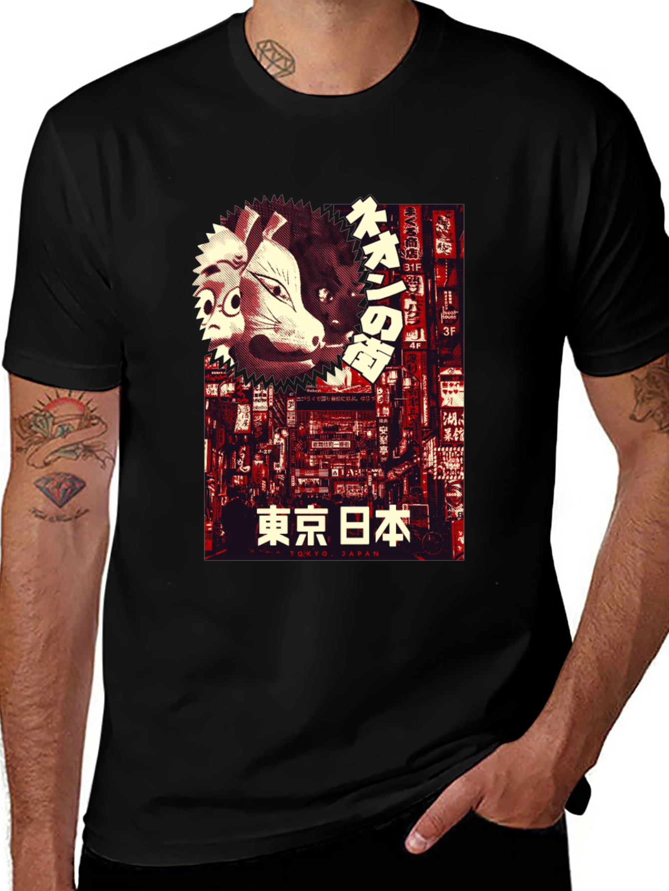 Step into the vibrant nightlife of Tokyo with this unique t-shirt! The bold graphic features Japanese text, neon-lit cityscapes, and traditional mask imagery. The design is printed on a soft, comfortable black tee, perfect for casual wear or making a statement. This tee is a conversation starter and lets you show off your unique style. Whether you're exploring your own city or dreaming of Japan, this t-shirt will keep you looking sharp and feeling comfortable.