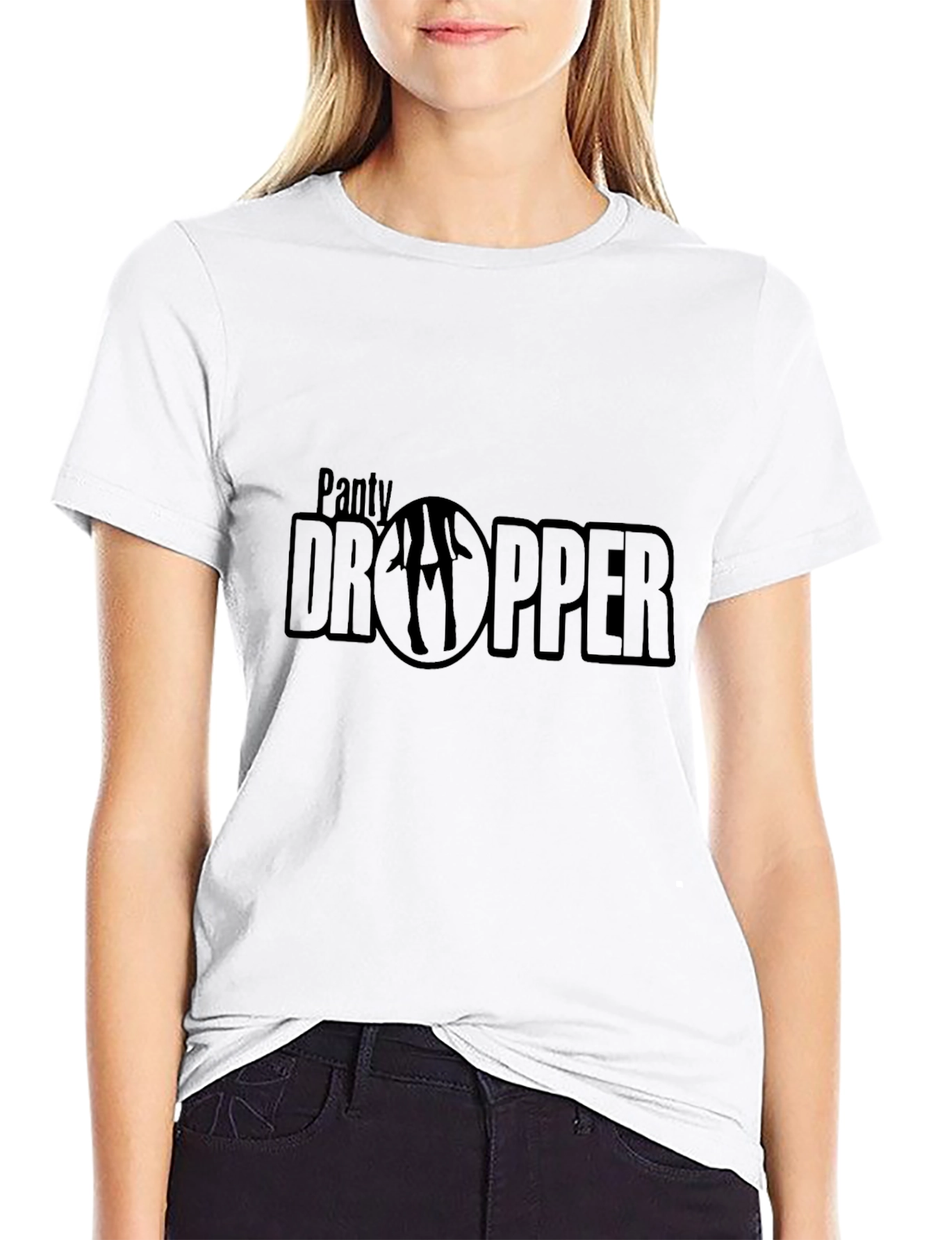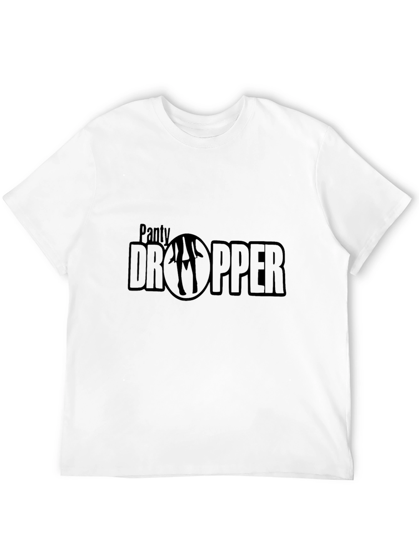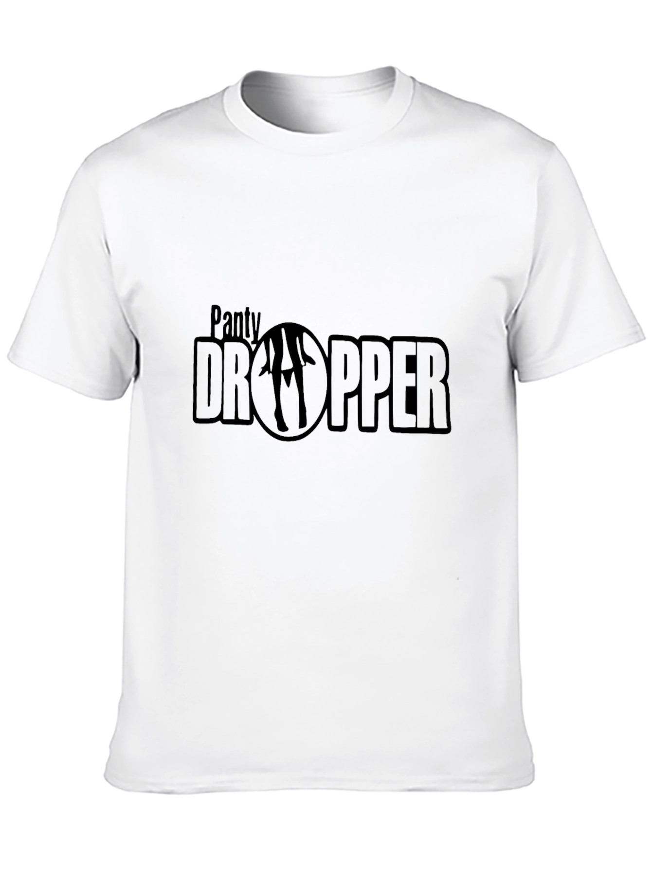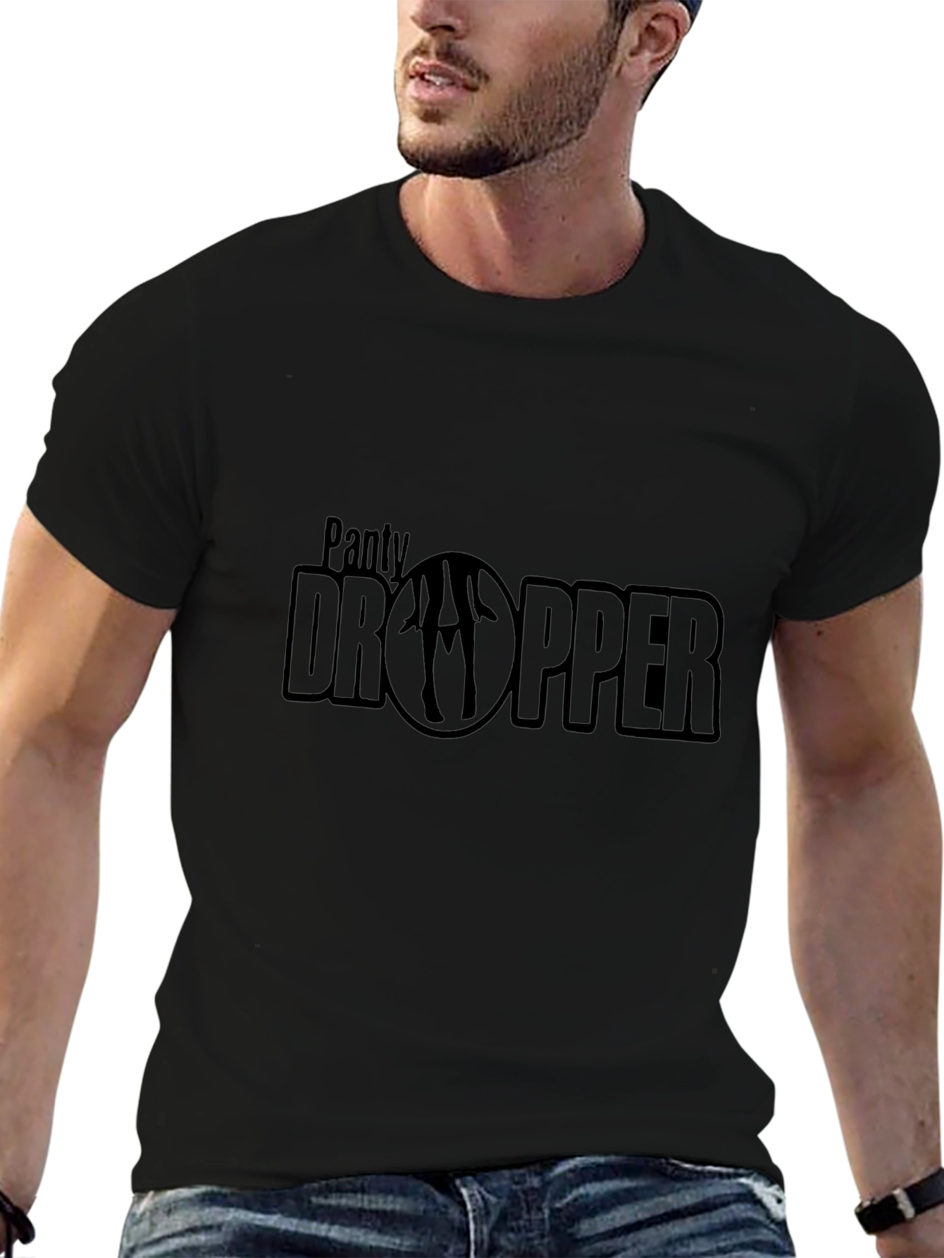 Make a statement with this bold black t-shirt featuring a "Panty Dropper" graphic print. The design incorporates a provocative silhouette within the typography for an edgy and confident style. Crafted from soft, breathable cotton, this tee offers all-day comfort and a relaxed fit. Perfect for casual outings, parties, or simply expressing your unique sense of humor. Pair it with jeans, shorts, or layer it under a jacket for versatile styling options. Show off your playful side with this eye-catching and conversation-starting t-shirt.