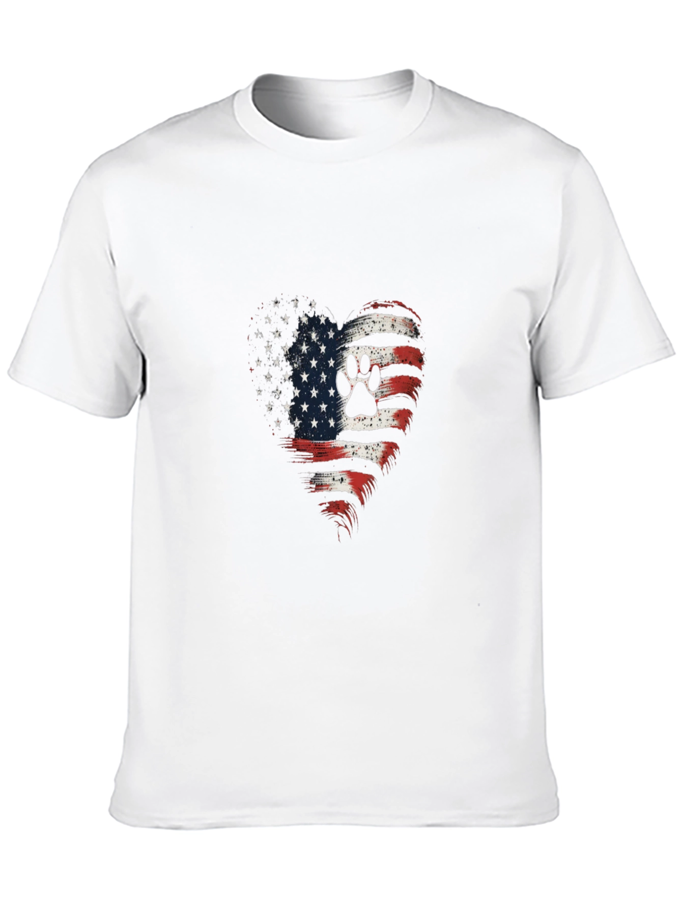 Show your love for your country and your furry friend with this unique t-shirt. The design features an American flag heart with a paw print. This shirt is made of soft material and is comfortable to wear. Wear it to the park, sporting events, or just while lounging around. The design gives a unique spin to a classic American theme. Support the USA and your pet with this patriotic paw print heart t-shirt! This unique tee makes a great gift for dog lovers.
