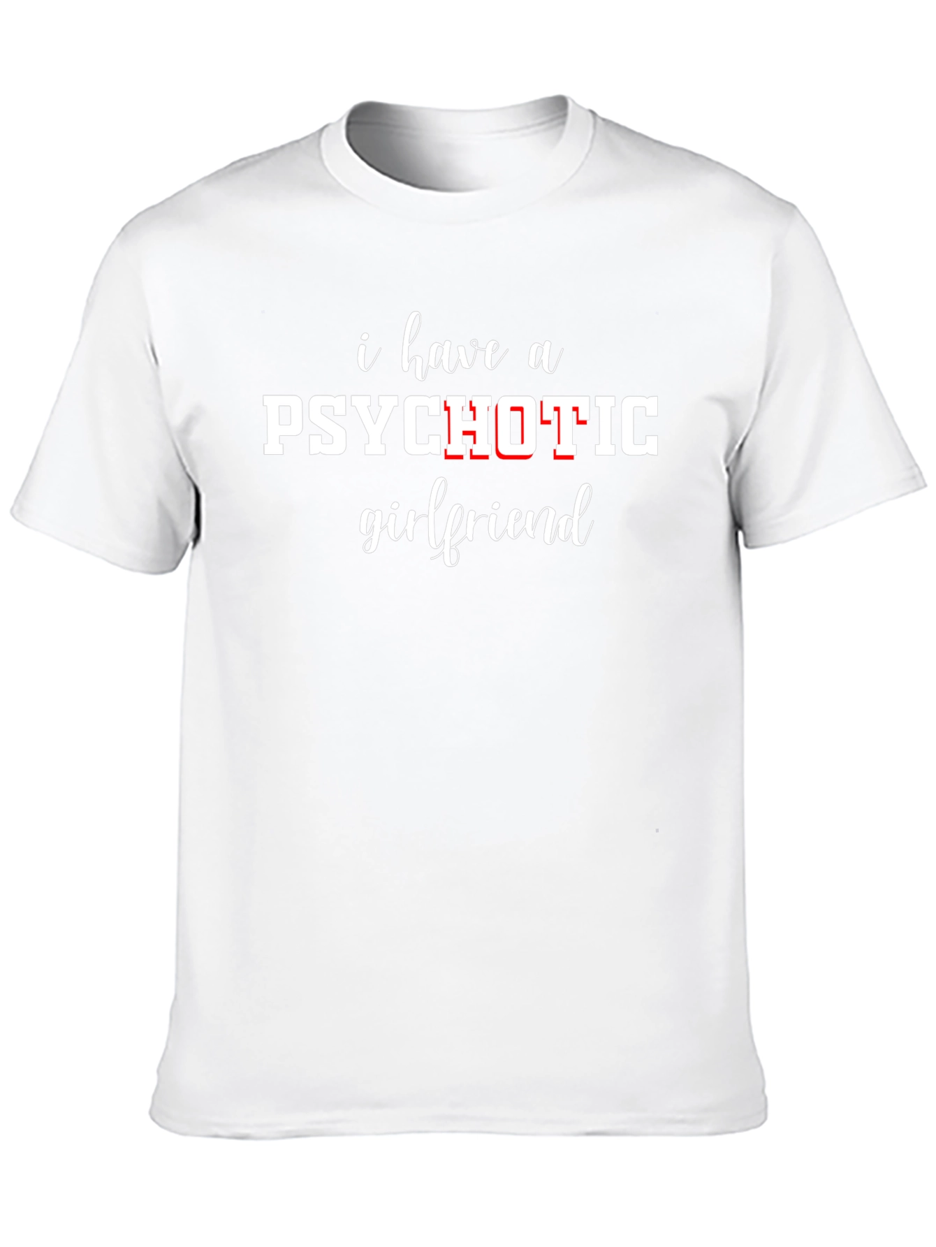 Show off your sense of humor with this hilarious "I have a psychotic girlfriend" t-shirt. This eye-catching tee features bold, contrasting white and red lettering on a classic black backdrop. Made from a comfortable, breathable fabric, this shirt is perfect for casual wear, parties, or as a gag gift for the boyfriend with a crazy significant other. Let everyone know you have a fun and quirky side with this statement piece. Stand out and make people laugh with this unique and witty t-shirt.