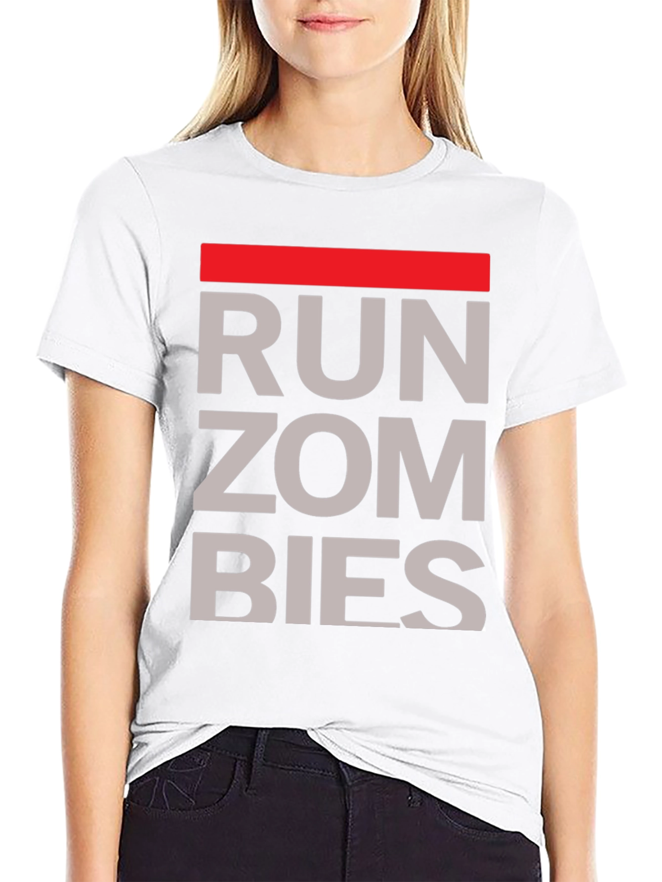 This black t-shirt features a bold, eye-catching design for zombie enthusiasts and runners alike. A vibrant red stripe sits atop the phrase "RUN ZOMBIES" in gray, block lettering. This shirt is perfect for everyday wear or themed events. The classic crew neck and short sleeves offer a comfortable fit, making it ideal for workouts, casual outings, or lounging at home. Made from a soft, breathable fabric, it ensures all-day comfort, whether you're escaping the undead or simply making a statement. Express your love for the zombie genre with this unique graphic tee!
