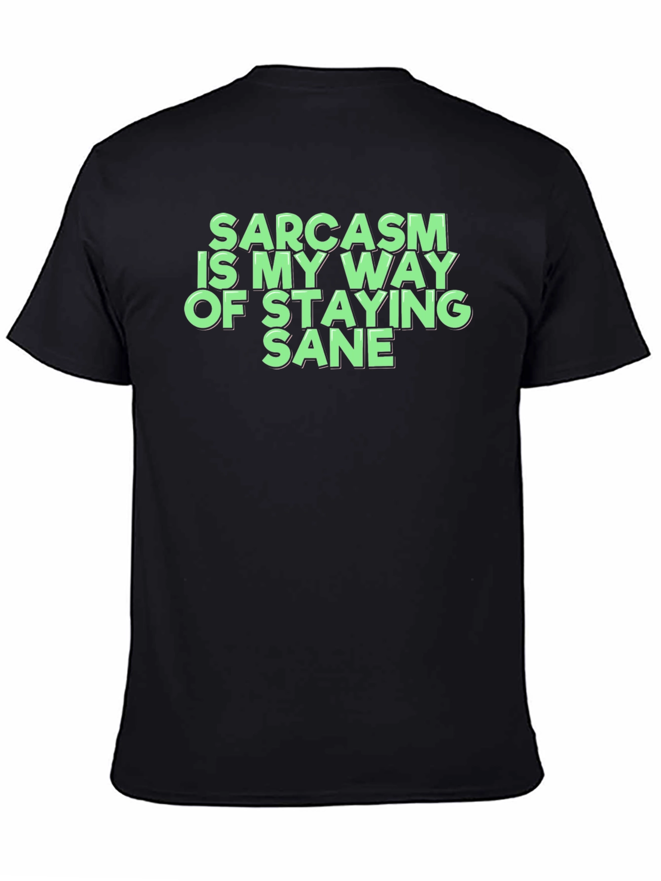 Show off your witty side with this statement t-shirt. Made from a comfortable, breathable fabric, this black tee features the phrase "Sarcasm Is My Way Of Staying Sane" in a bold, eye-catching font. This shirt is perfect for casual wear. It pairs well with jeans, shorts, or even leggings. Ideal for those who appreciate a good dose of humor and want to express their unique personality. Get ready to turn heads and spark conversations with this fun and relatable tee.