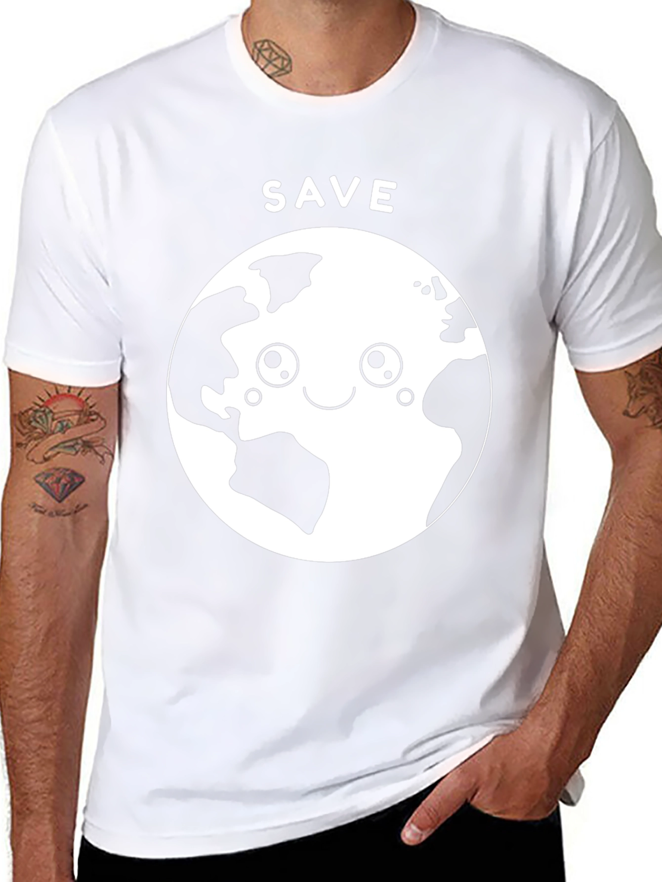 Show your love for our planet with this stylish and comfortable t-shirt. This black t-shirt features a cute, cartoon-style Earth graphic with a friendly face, accompanied by the word "SAVE" printed above. Made from what appears to be soft, breathable fabric, this tee is perfect for everyday wear and making a statement about environmental consciousness. Wear it to school, the park, or your next environmental rally. Be comfortable and eco-aware. The dark color makes it easy to match with your favorite jeans or shorts.