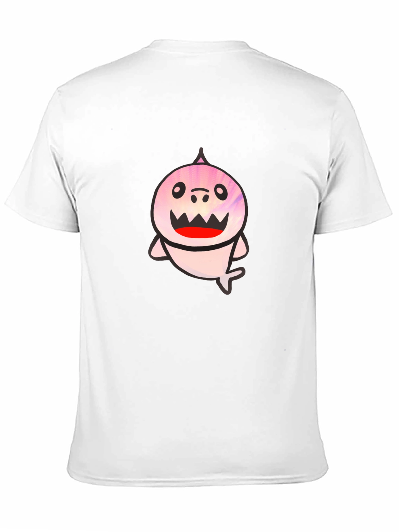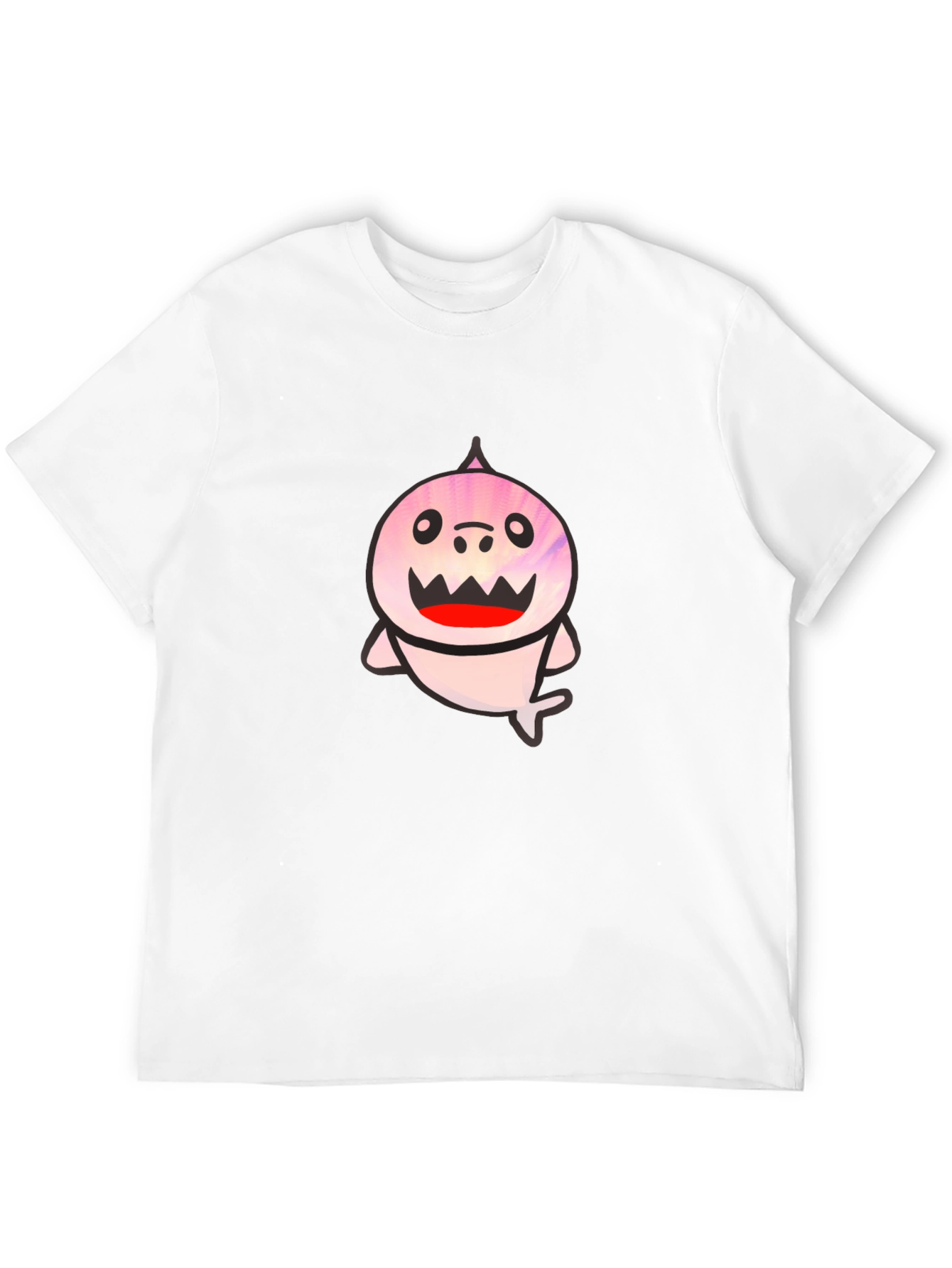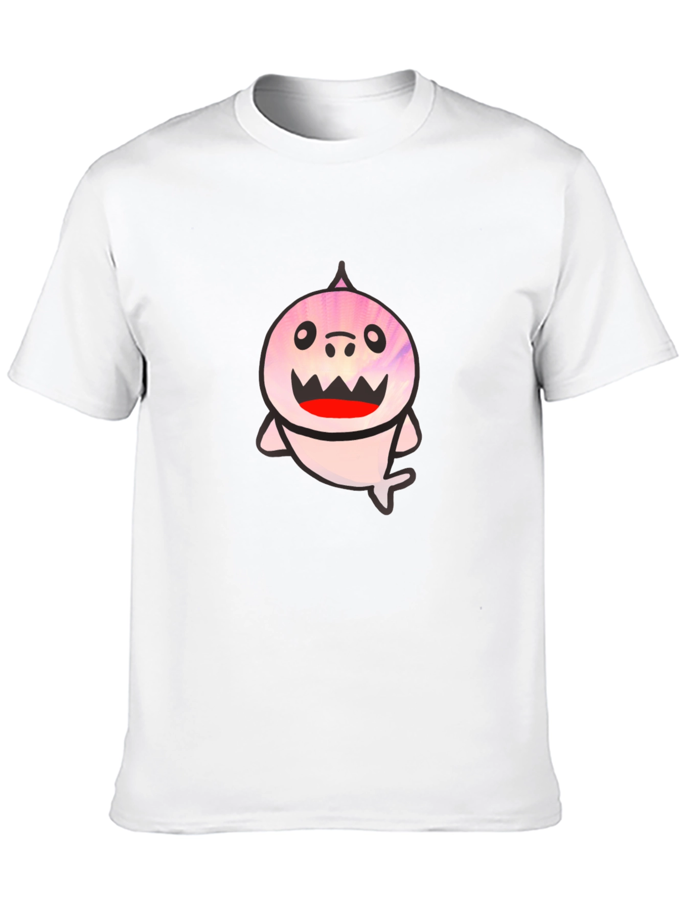 Make a splash with this stylish black t-shirt featuring a vibrant shark graphic. The cartoon-style shark is printed on the front of the shirt. Crafted from a comfortable-looking fabric, this short-sleeved tee offers a relaxed fit for everyday wear. The bold graphic adds a playful touch, making it perfect for casual outings, weekend adventures, or simply lounging in style. This unique tee is sure to turn heads and showcase your fun-loving personality. Add this eye-catching piece to your wardrobe and let your style shine!