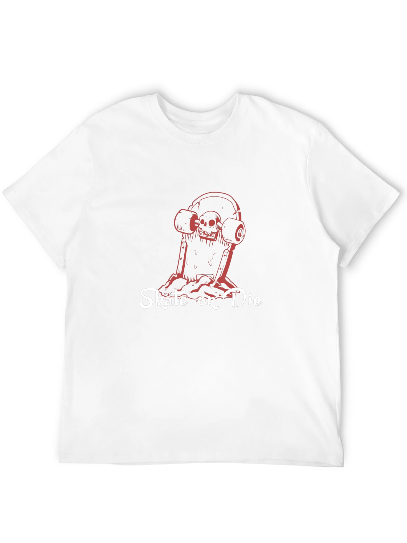 Show off your love for skateboarding with this edgy black t-shirt. The shirt features a bold graphic print of a skateboard stylized as a tombstone with a skull, along with the phrase 'Skate or Die'. This tee is perfect for casual wear, skateboarding sessions, or as a statement piece to showcase your unique style. Made from comfortable, breathable fabric, it's designed for everyday wear. This shirt is a must-have for any skater or fan of alternative fashion.
