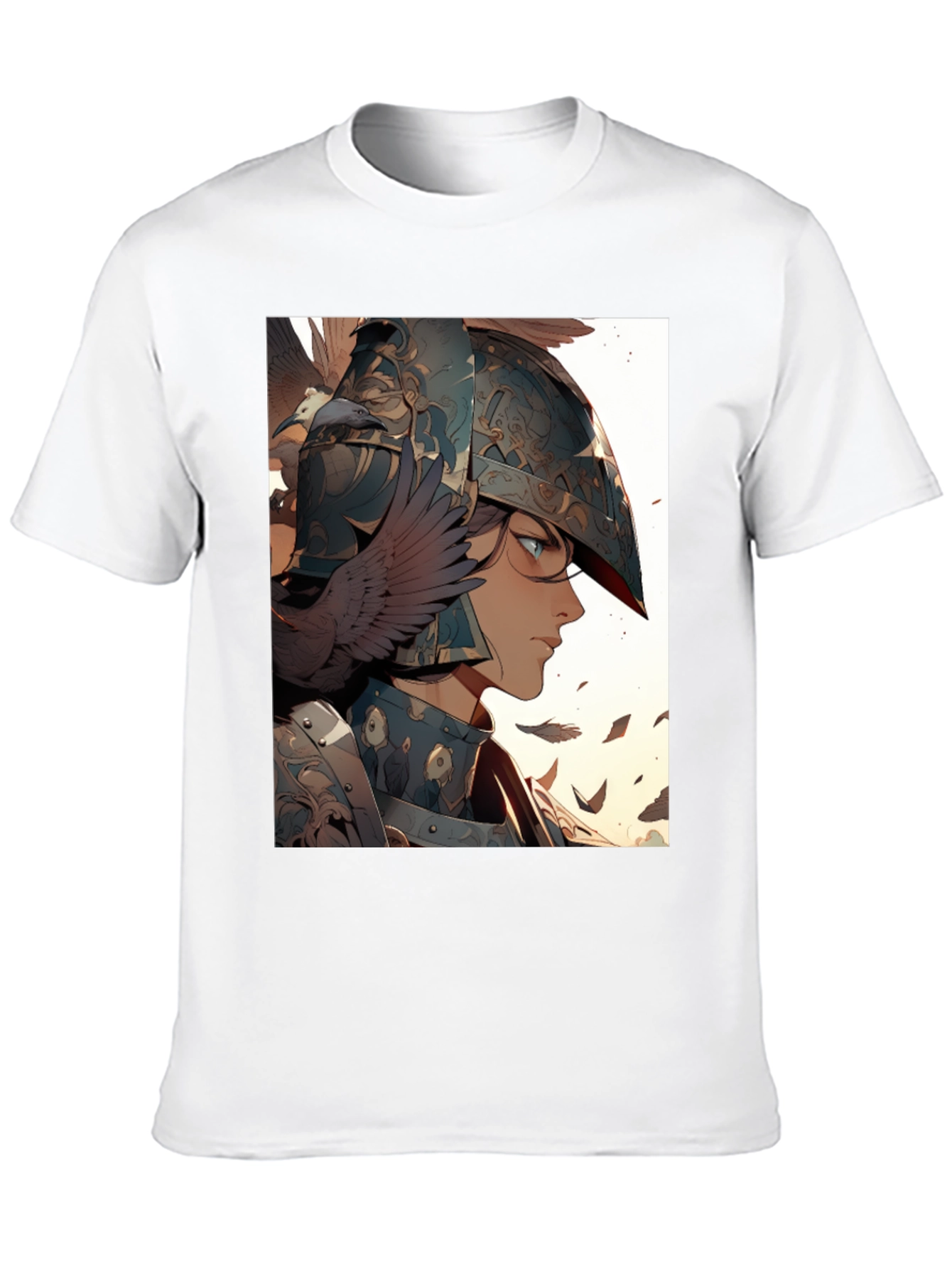 Showcase your unique style with this striking black t-shirt, featuring a captivating graphic of a woman warrior. The detailed illustration showcases a figure in ornate armor, adorned with bird motifs, creating a powerful and artistic statement. Made from a comfortable cotton blend, this tee is perfect for everyday wear. Its classic fit makes it a versatile addition to any wardrobe. Whether you're expressing your individuality or searching for a standout piece, this warrior woman tee is an ideal choice. Perfect for casual outings, artistic gatherings, or simply making a statement.
