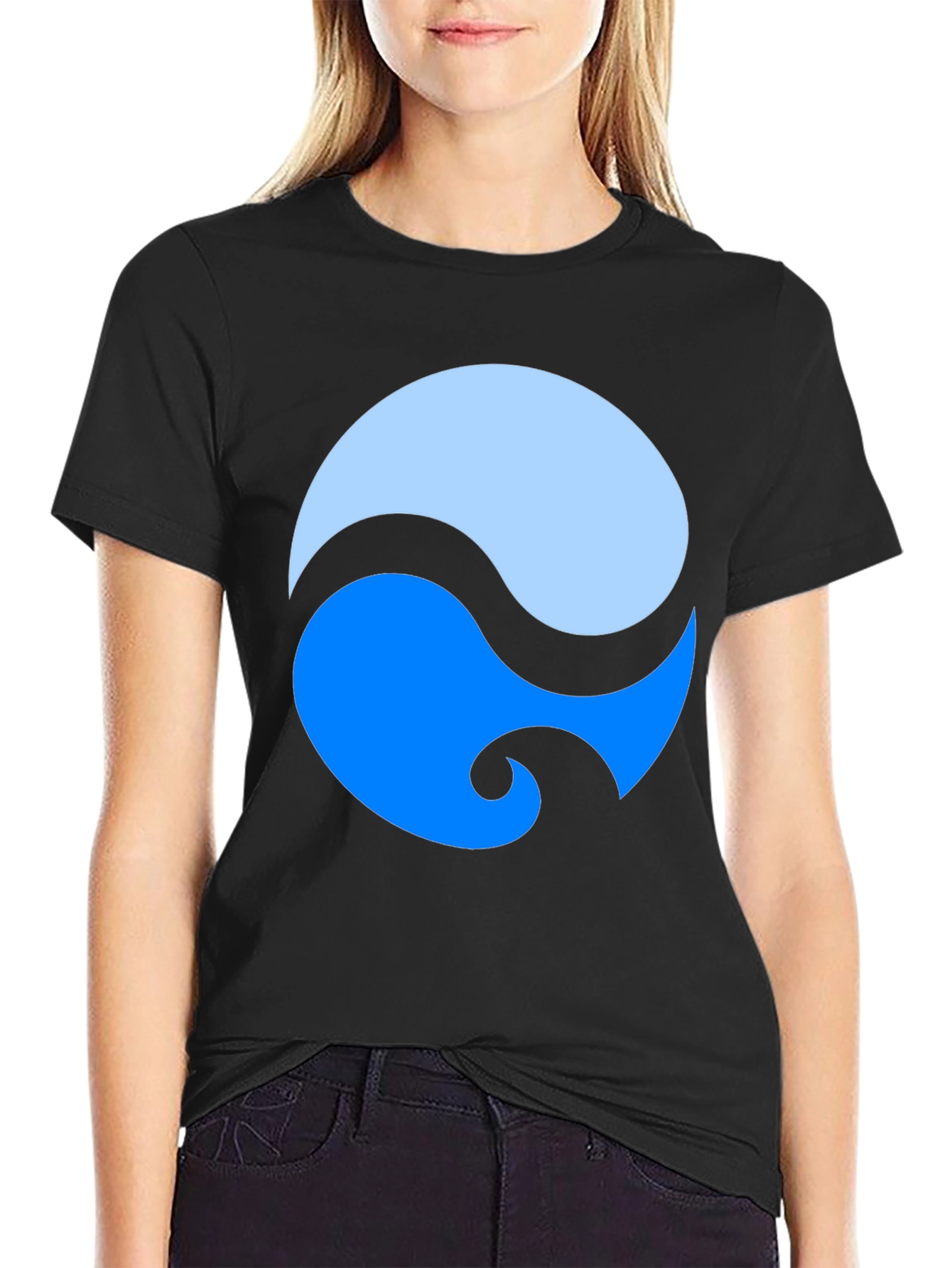 Show off your modern style with this striking black graphic tee. The design features a two-tone blue circle that embodies the Yin Yang concept with a stylized swirl. Made from a soft, comfortable fabric, this tee is perfect for everyday wear. The classic fit makes it a versatile piece that pairs effortlessly with jeans, shorts, or joggers. Ideal for casual outings, relaxed weekends, or making a statement wherever you go. Express your inner balance and stand out from the crowd with this unique and eye-catching t-shirt.